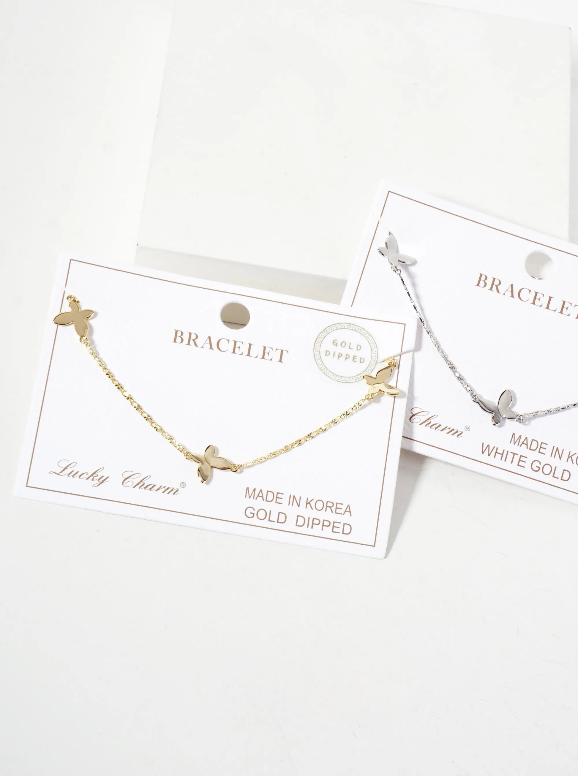 This Elegant Chain Bracelet Features Three Beautifully Crafted Butterfly-shaped Links, Each Delicately 18K Gold-dipped For A Refined, Luxurious Finish. Made From Polished Brass, The Butterflies Are Meticulously Designed To Capture A Sense Of Grace And Movement, Adding A Whimsical, Feminine Touch To The Bracelet.