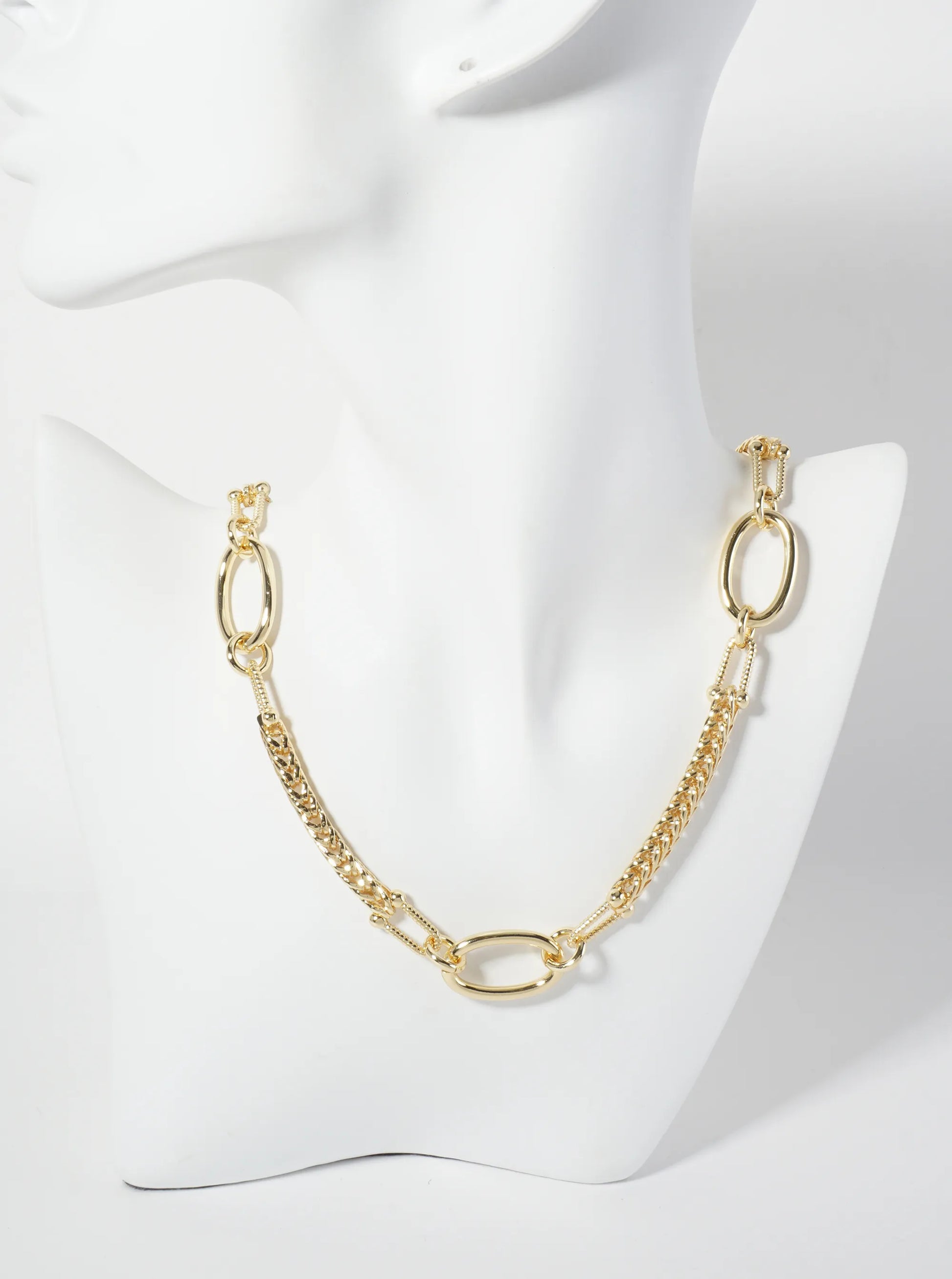 The Standout Feature Of This Necklace Is The Three Oval-shaped Accents, Which Serve As The Focal Point. These Ovals Add A Touch Of Sophistication And Uniqueness To The Piece, Drawing Attention Without Overwhelming The Design. The Necklace Is Dipped In 18K Gold, Giving It A Luxurious And Radiant Finish That Enhances Its Elegance And Versatility.