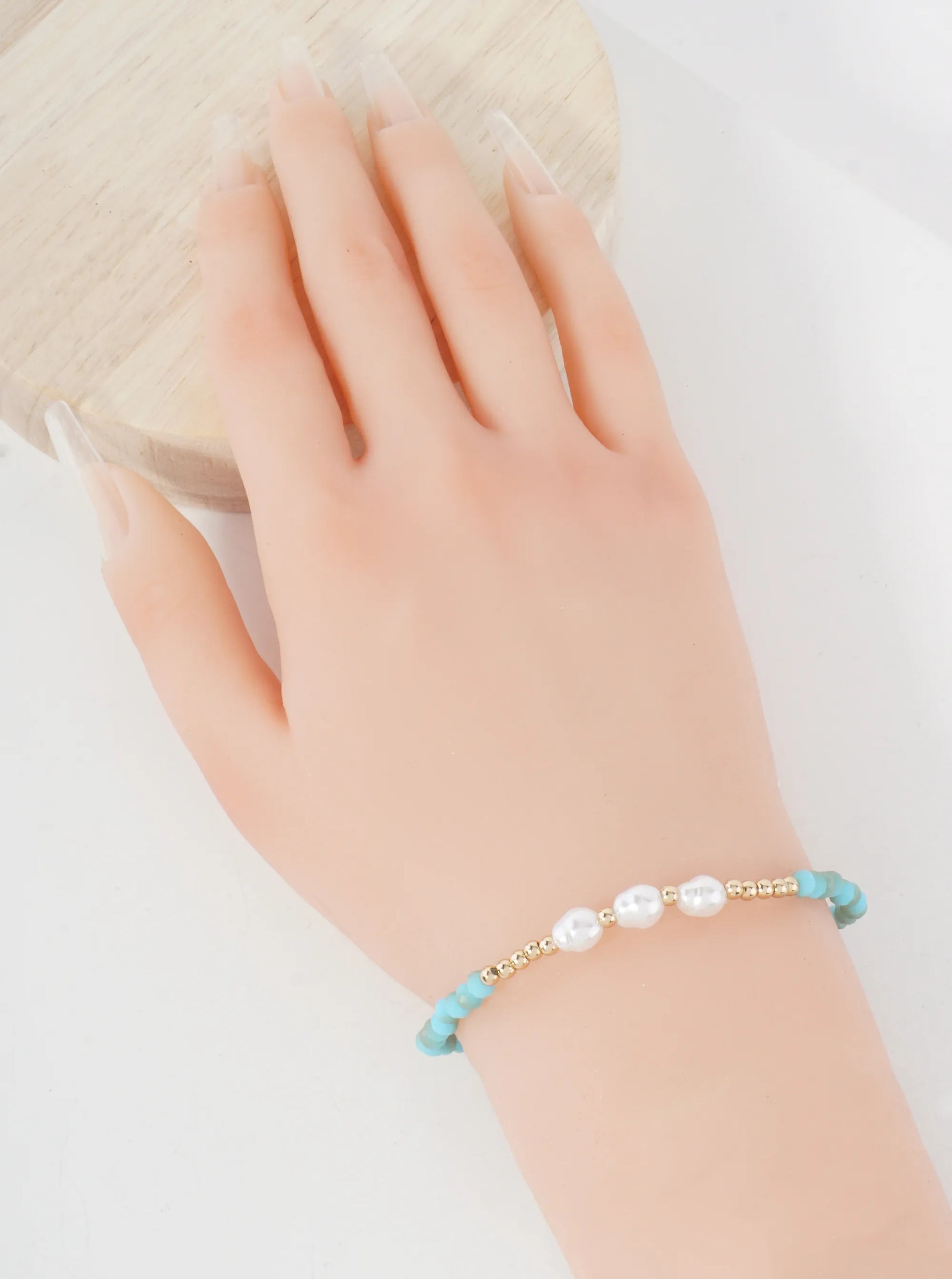 This Elegant Stretch Bracelet Features Three Lustrous Pearl Beads Accenting A Strand Of Faceted Glass Beads, Adding A Touch Of Sparkle And Sophistication. The Reflective Surface Of The Glass Beads Contrasts Beautifully With The Smooth Pearls, Creating A Harmonious And Refined Design. Perfect For Adding A Subtle Yet Stunning Touch To Any Outfit, This Bracelet Is Versatile Enough For Both Everyday Wear And Special Occasions.