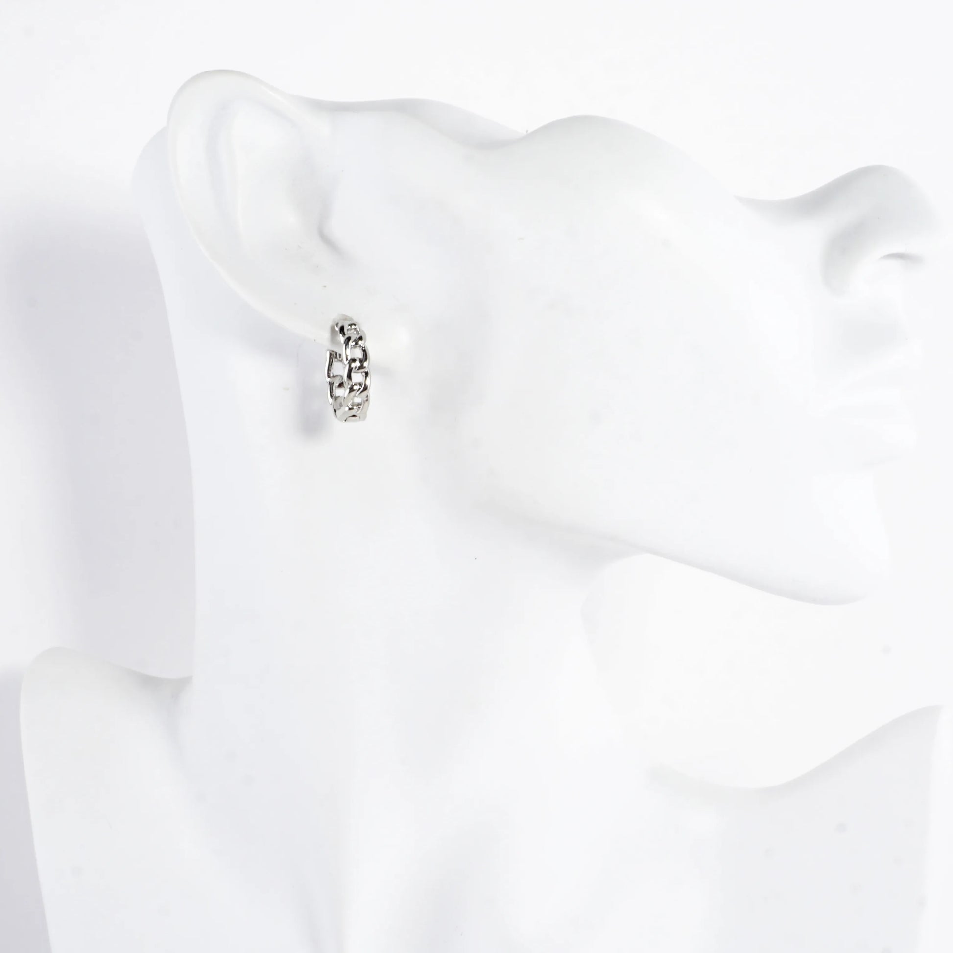 Tiny Curb Chain Texture Click Huggie Hoop Earrings