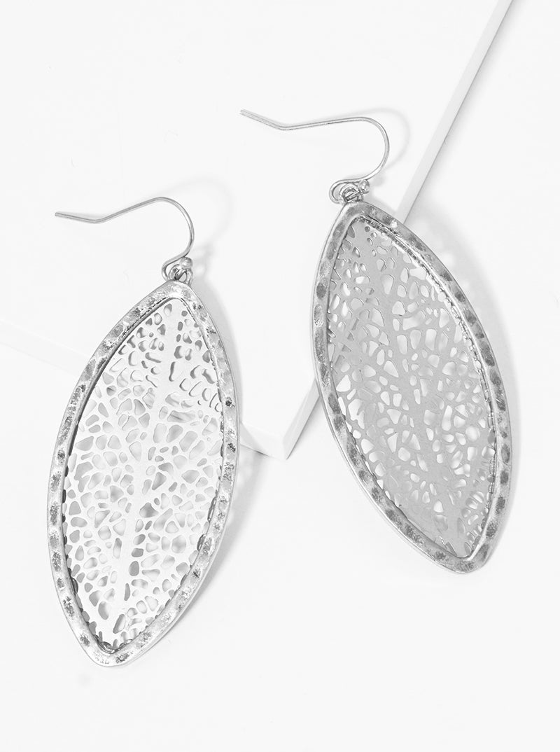 Tree Of Life Marquise Shaped Filigree Metal Dangle Drop Earrings