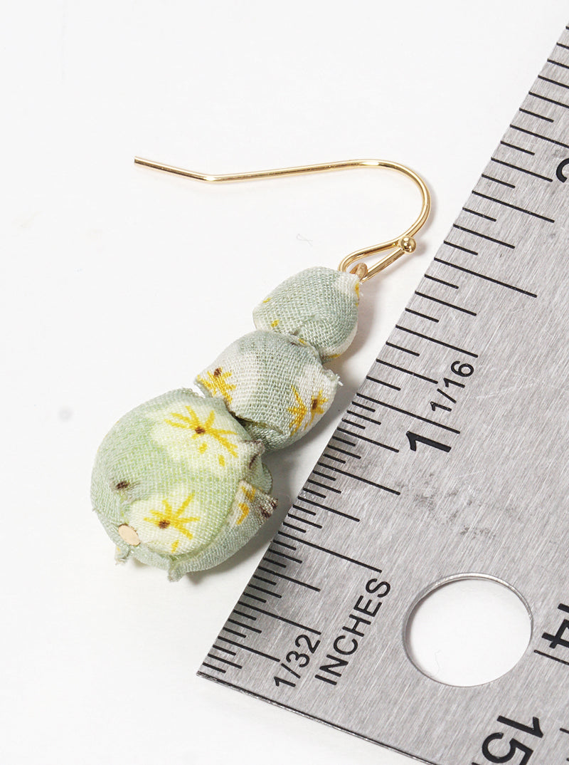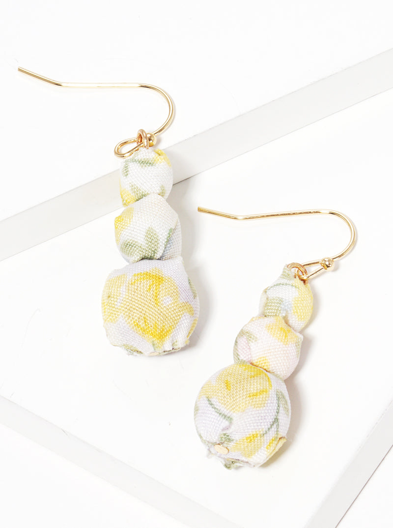 Tri Fabric Wrapped Beads Dangle Drop Earrings