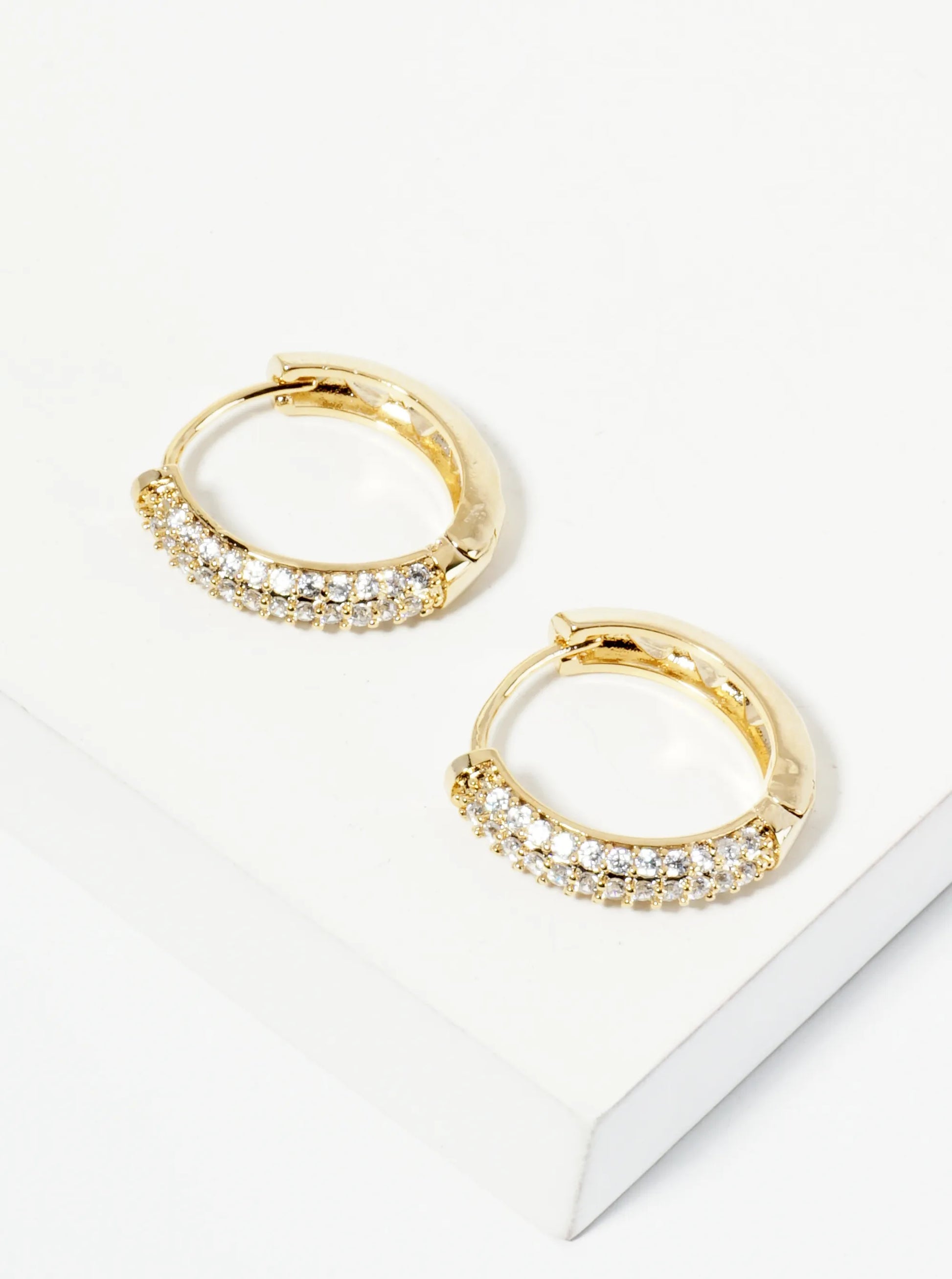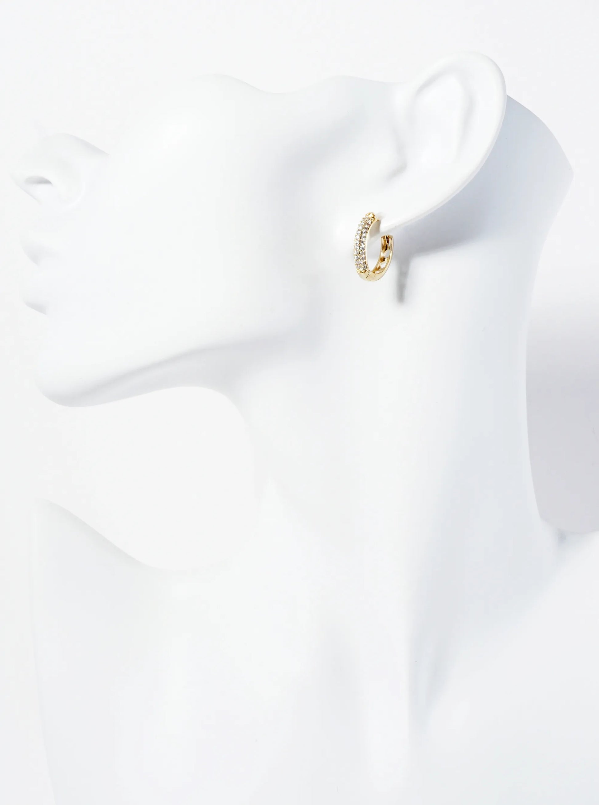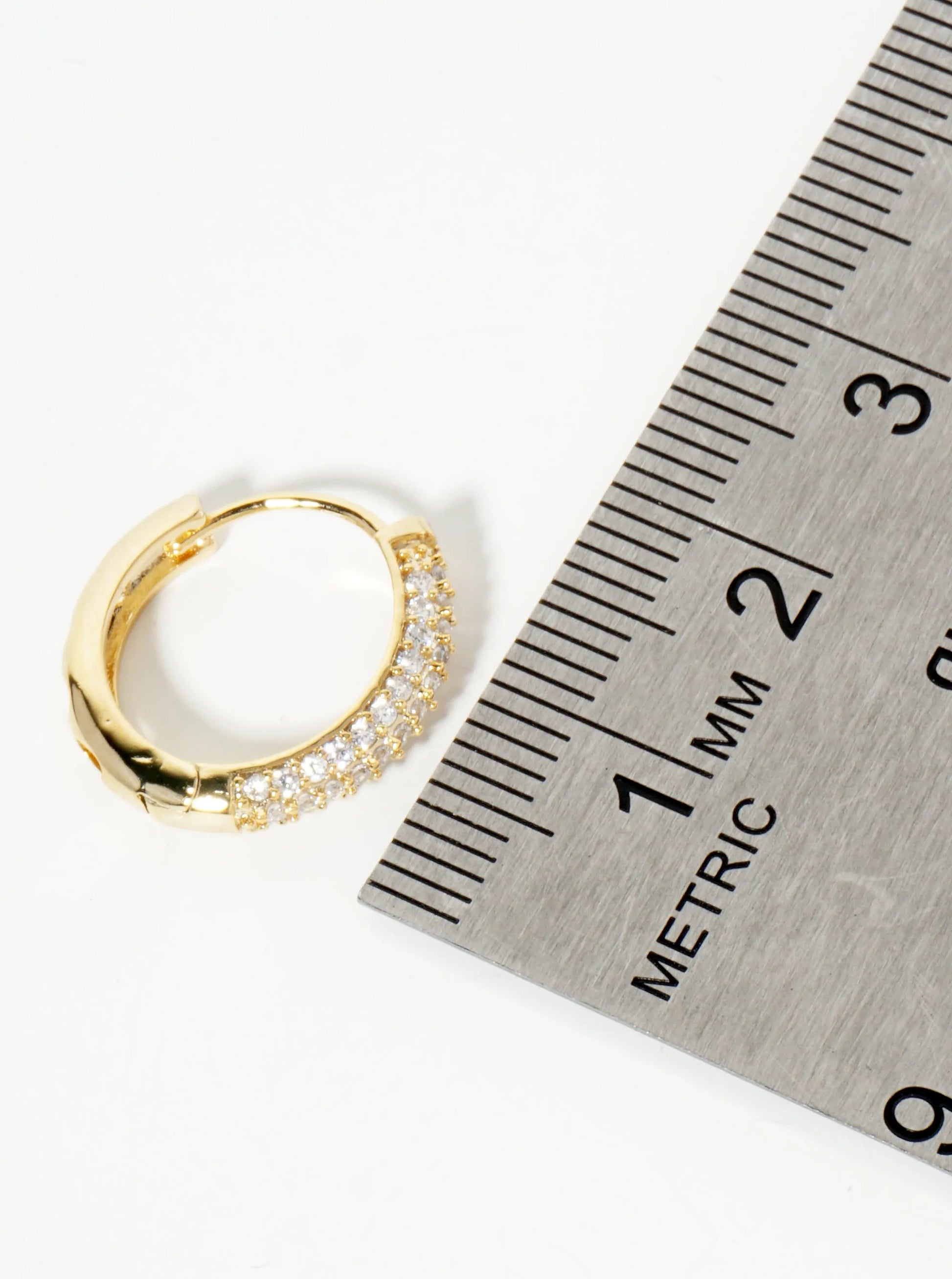 Triple-Row Micro Pave Cubic-Zirconia 14K-Gold-Dipped 15mm Huggie Hoop Earrings