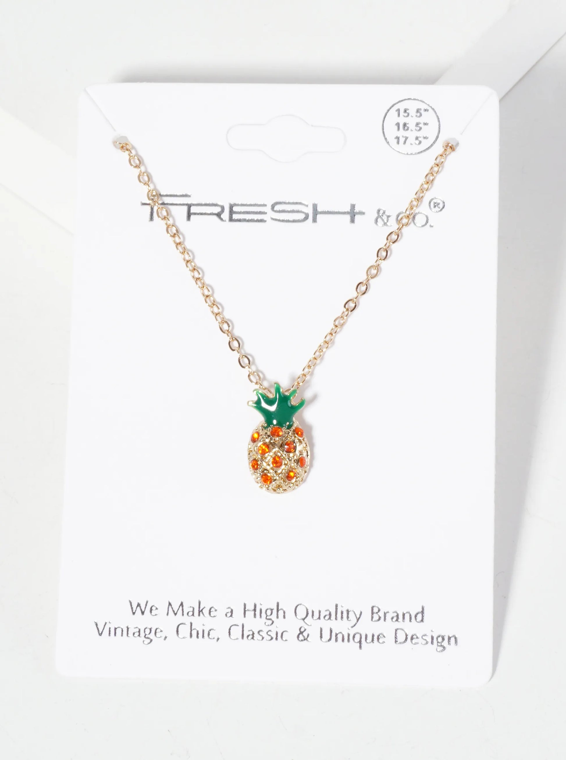 Tropical-Fruit-Theme Crystal-Pave Pineapple Pendant Necklace