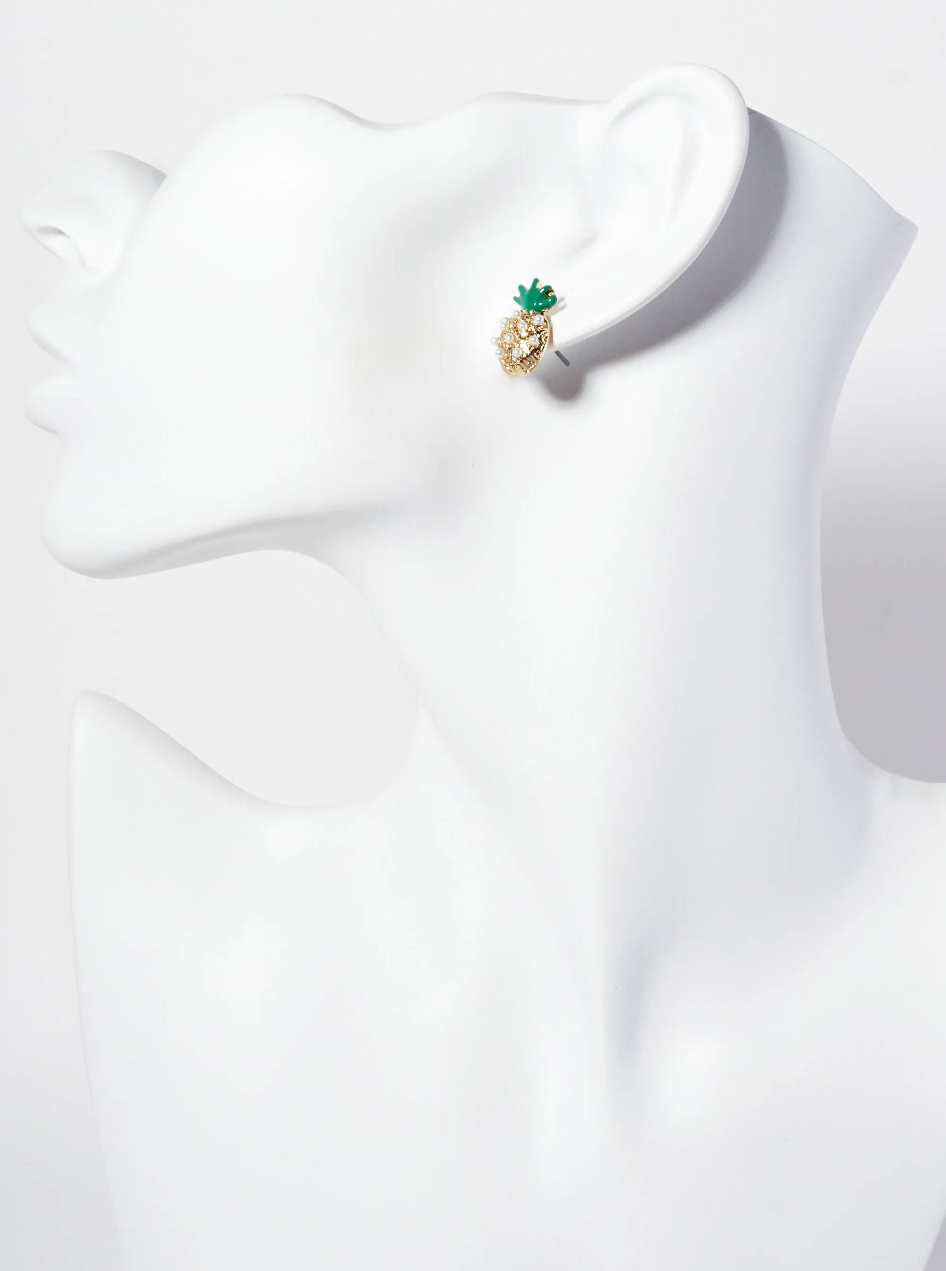 Tropical-Fruit-Theme Crystal-Pave Pineapple Stud Earrings
