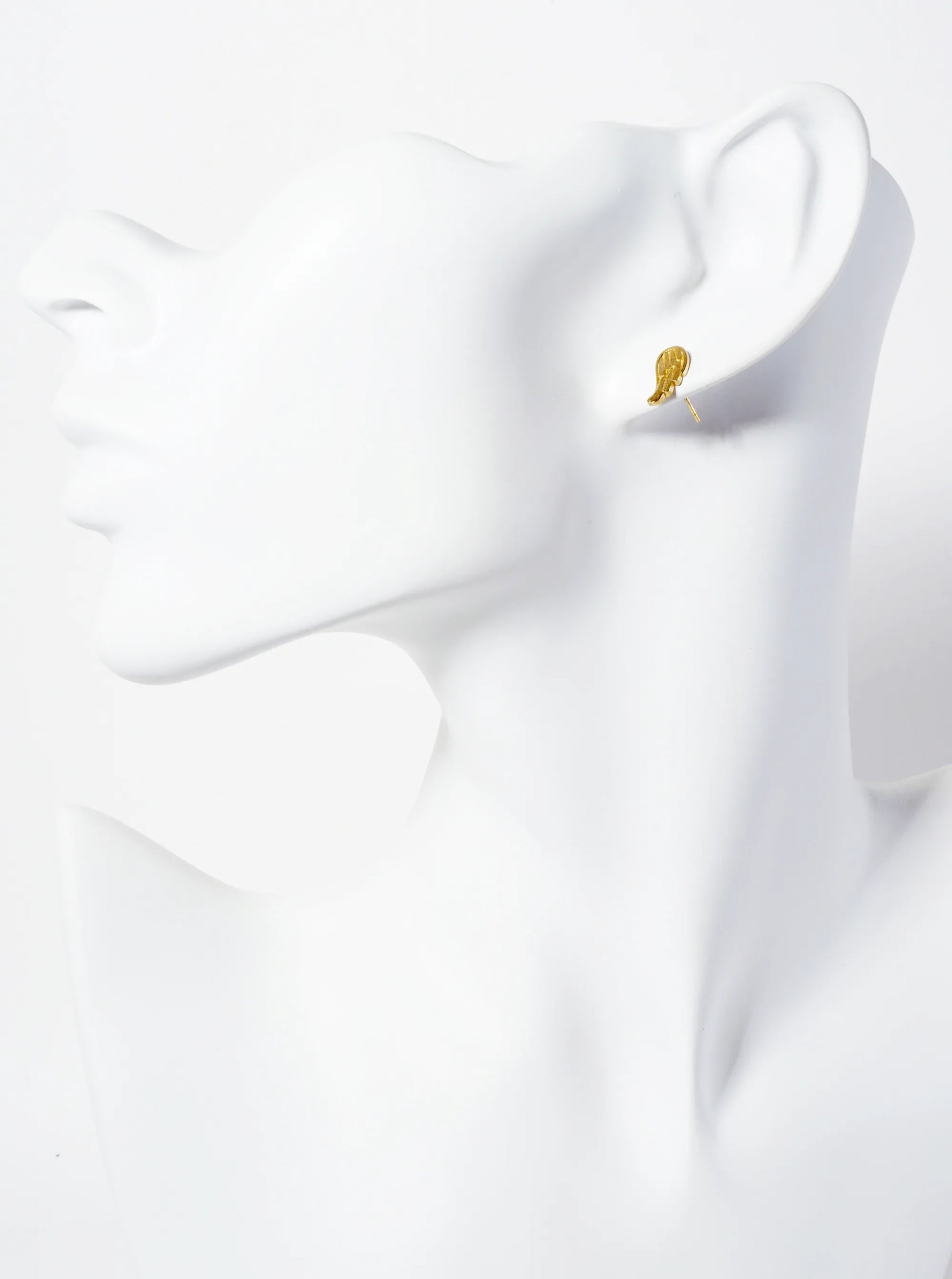 Tropical-theme 18K-Gold-Dipped Brass Brushed-Texture Cutout Pineapple Stud Earrings
