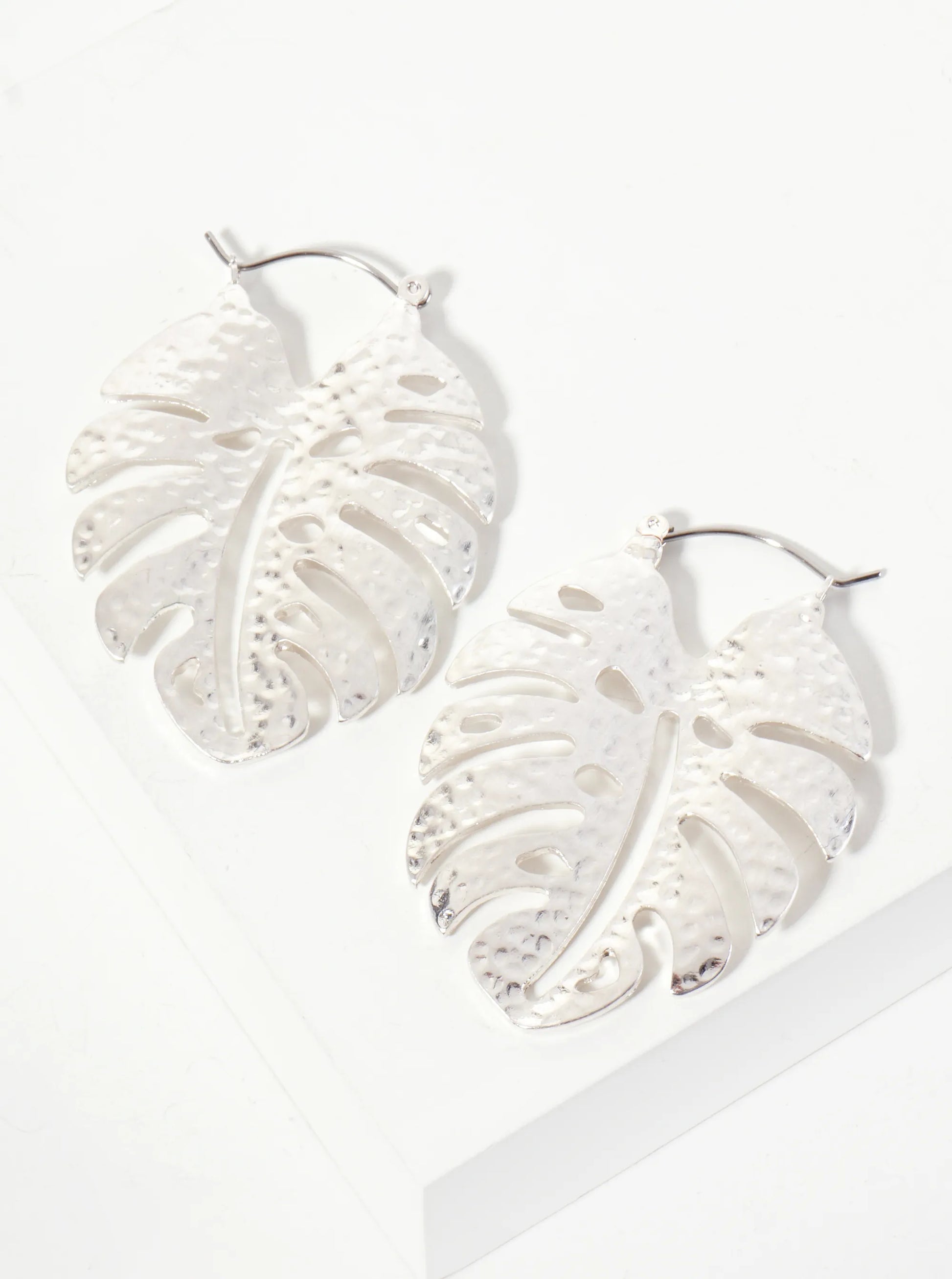Tropical-Theme Hammered-Texture Monstera Leaf Earrings