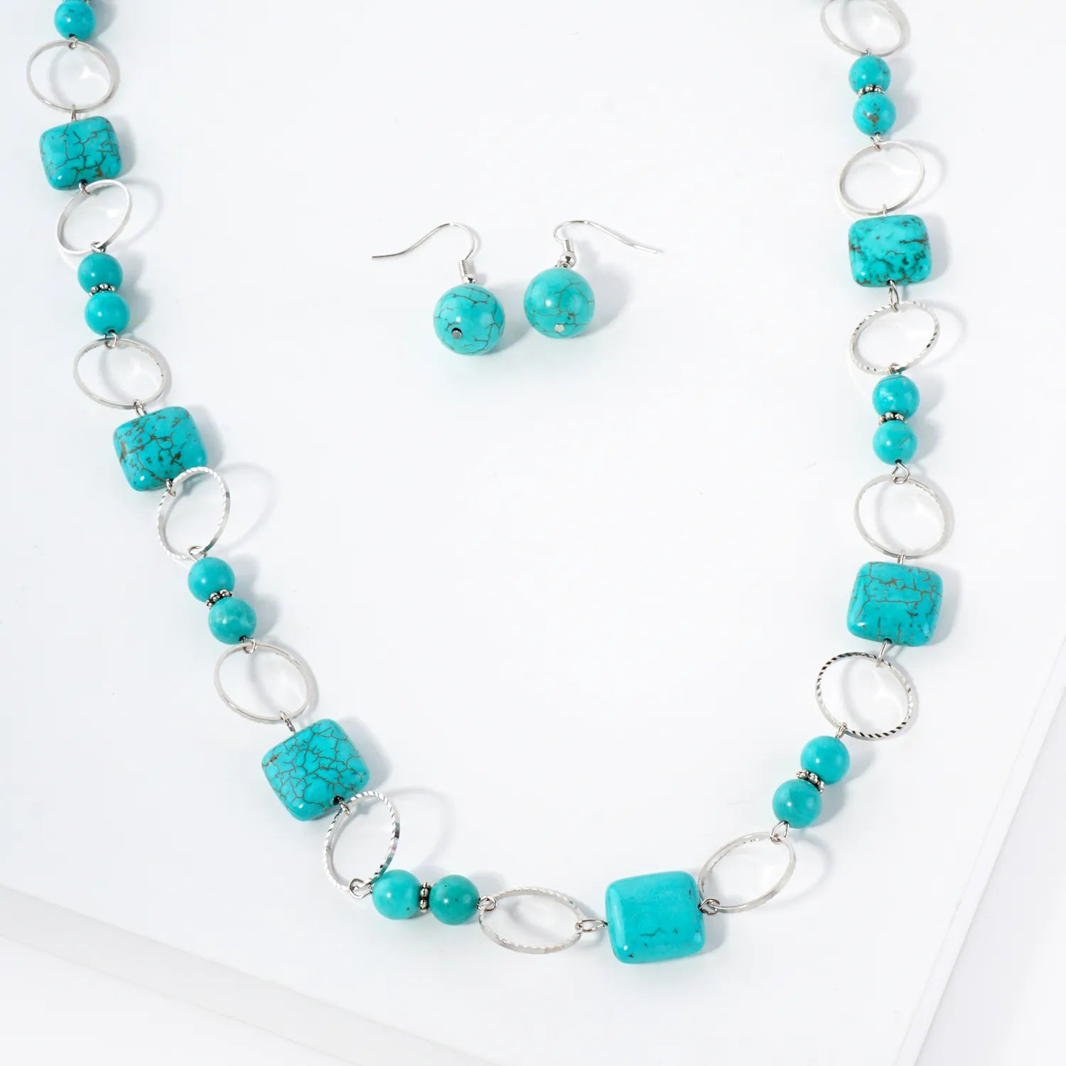 Elevate Your Accessory Collection With This 28-inch Long Turquoise Necklace Set, Featuring Natural Semi-precious Stones And Coordinating Dangle Earrings. Designed For Effortless Style And Grounded Elegance, This Set Blends Bohemian Charm With Classic Versatility.