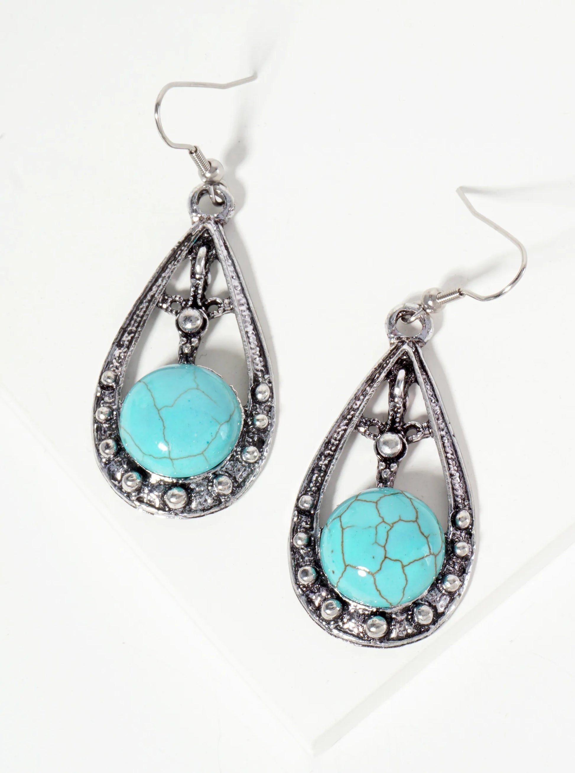 Turquoise Semi-Precious Natural-Stone Teardrop-Shape Bohemian Western Dangle Drop Earrings