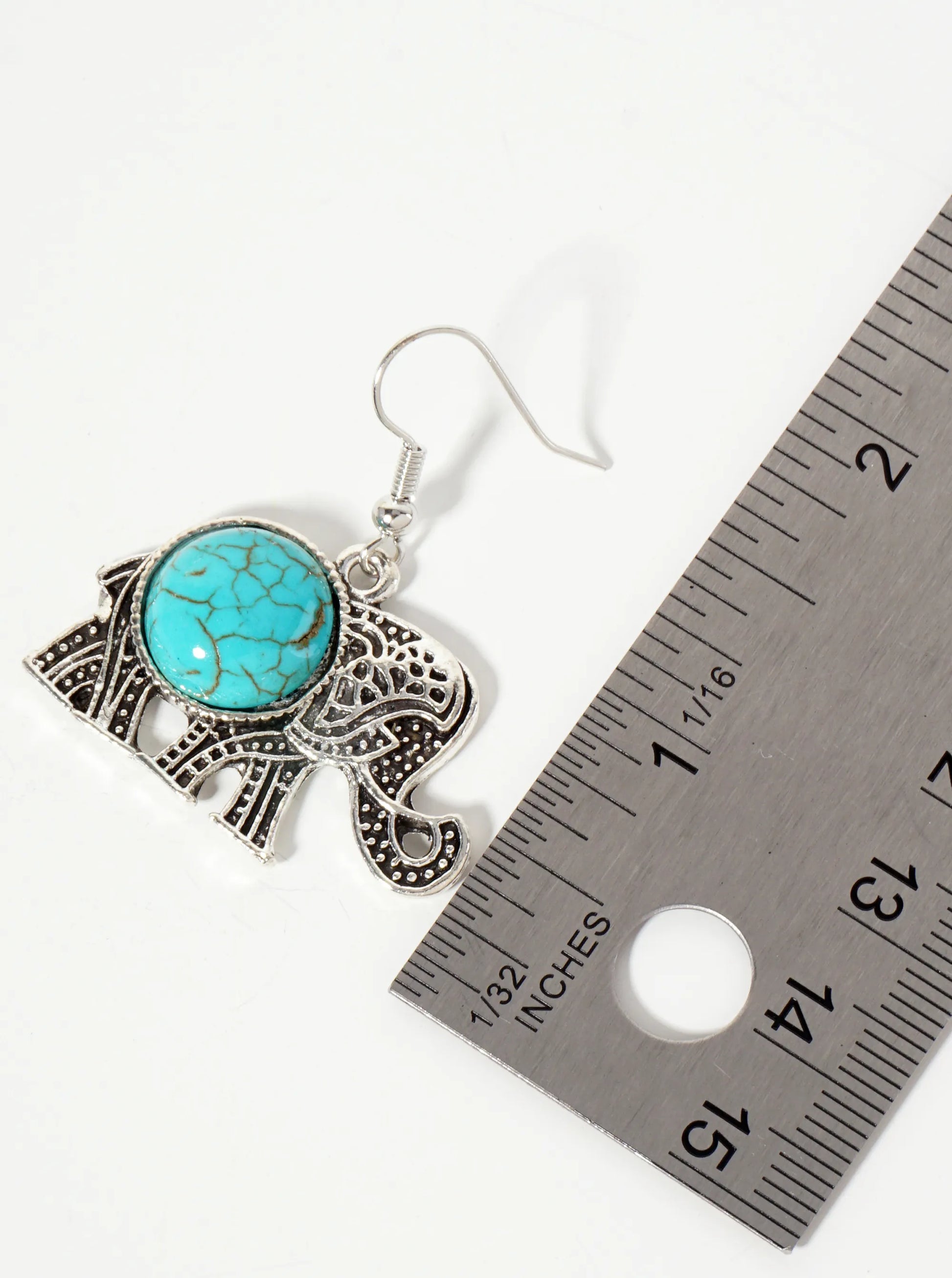 Turquoise Stone Embedded Textured Elephant Drop Earrings