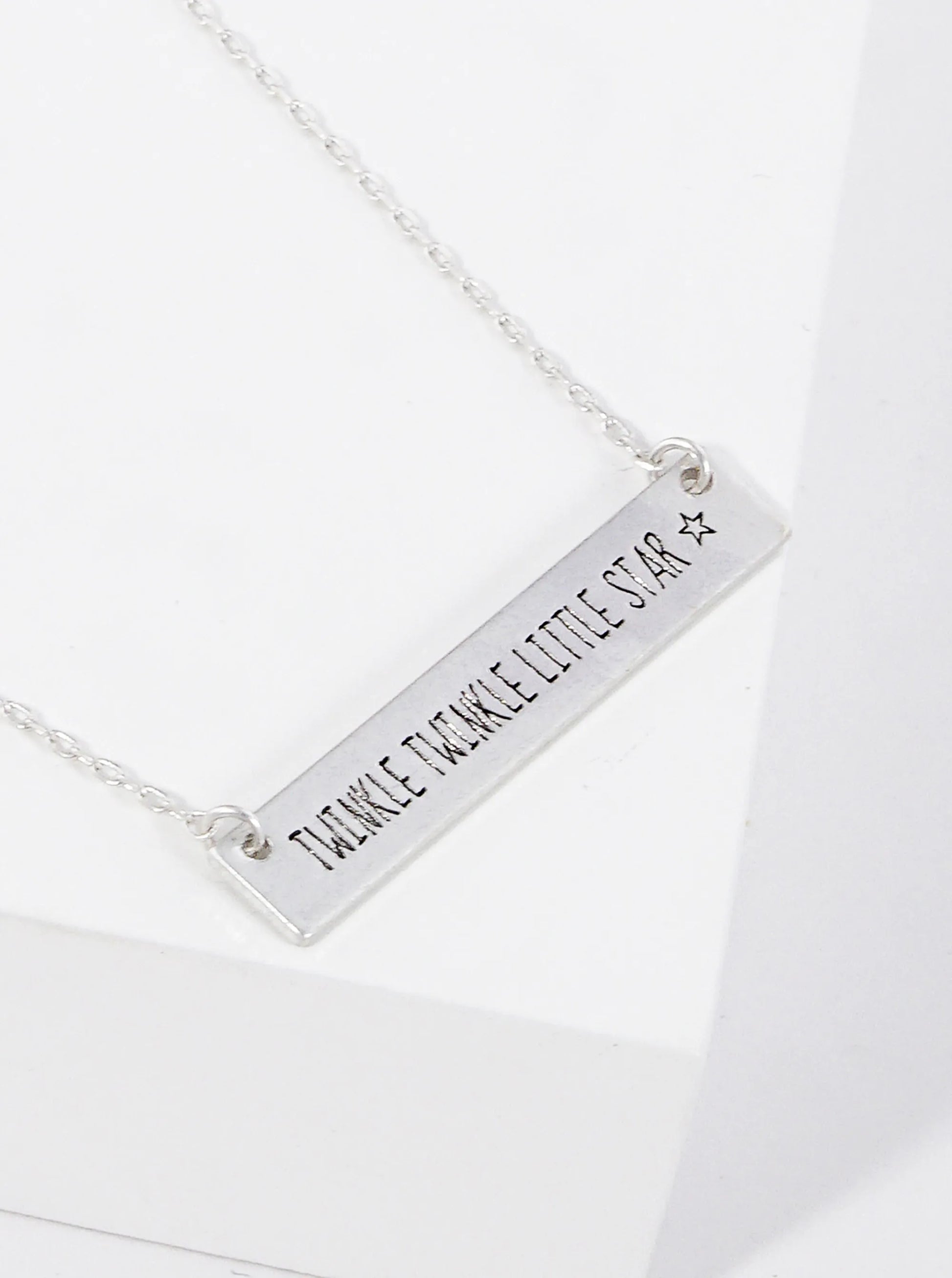 Twinkle Twinkle Little Star Engraved Horizontal Bar Pendant Necklace