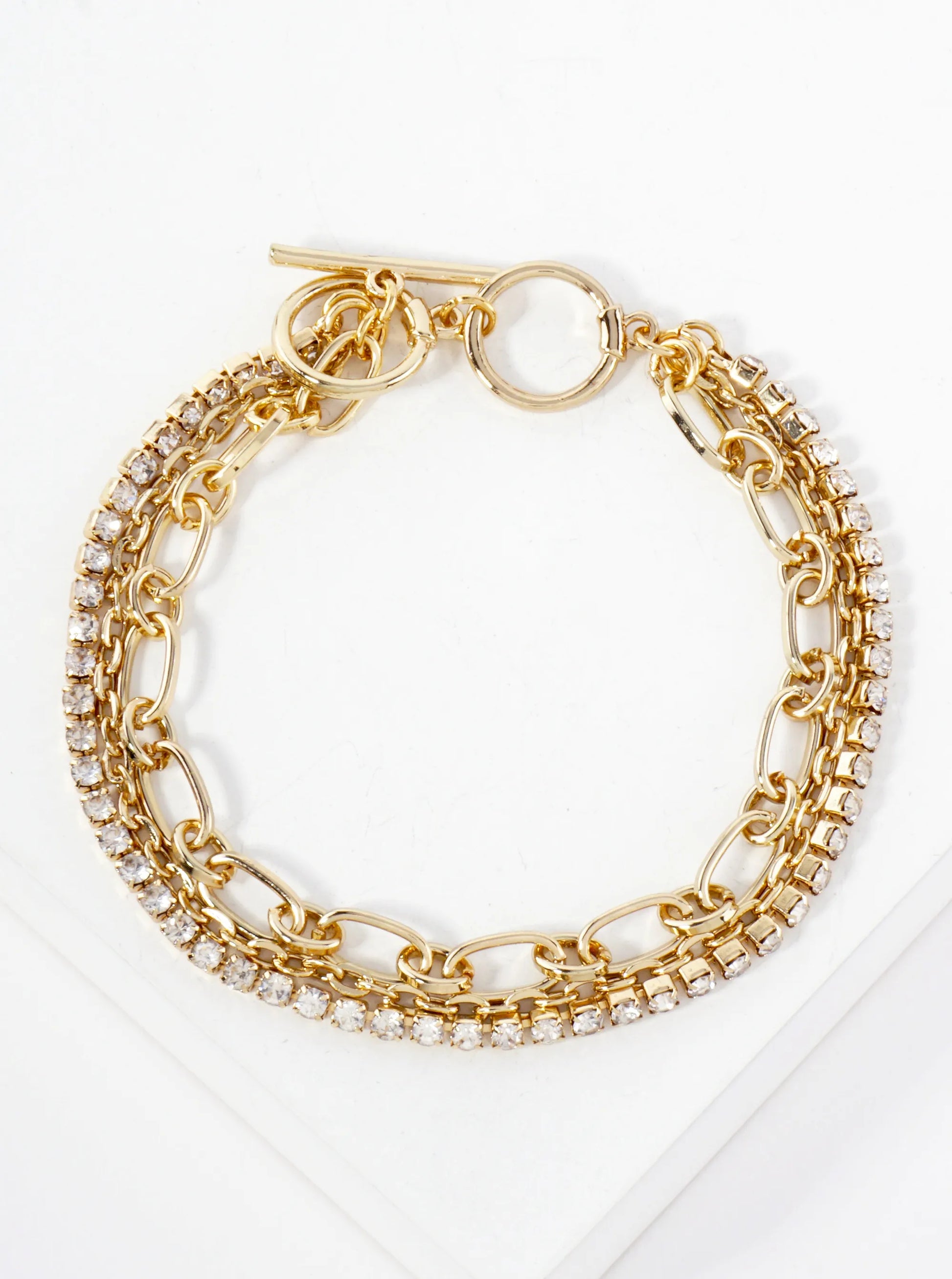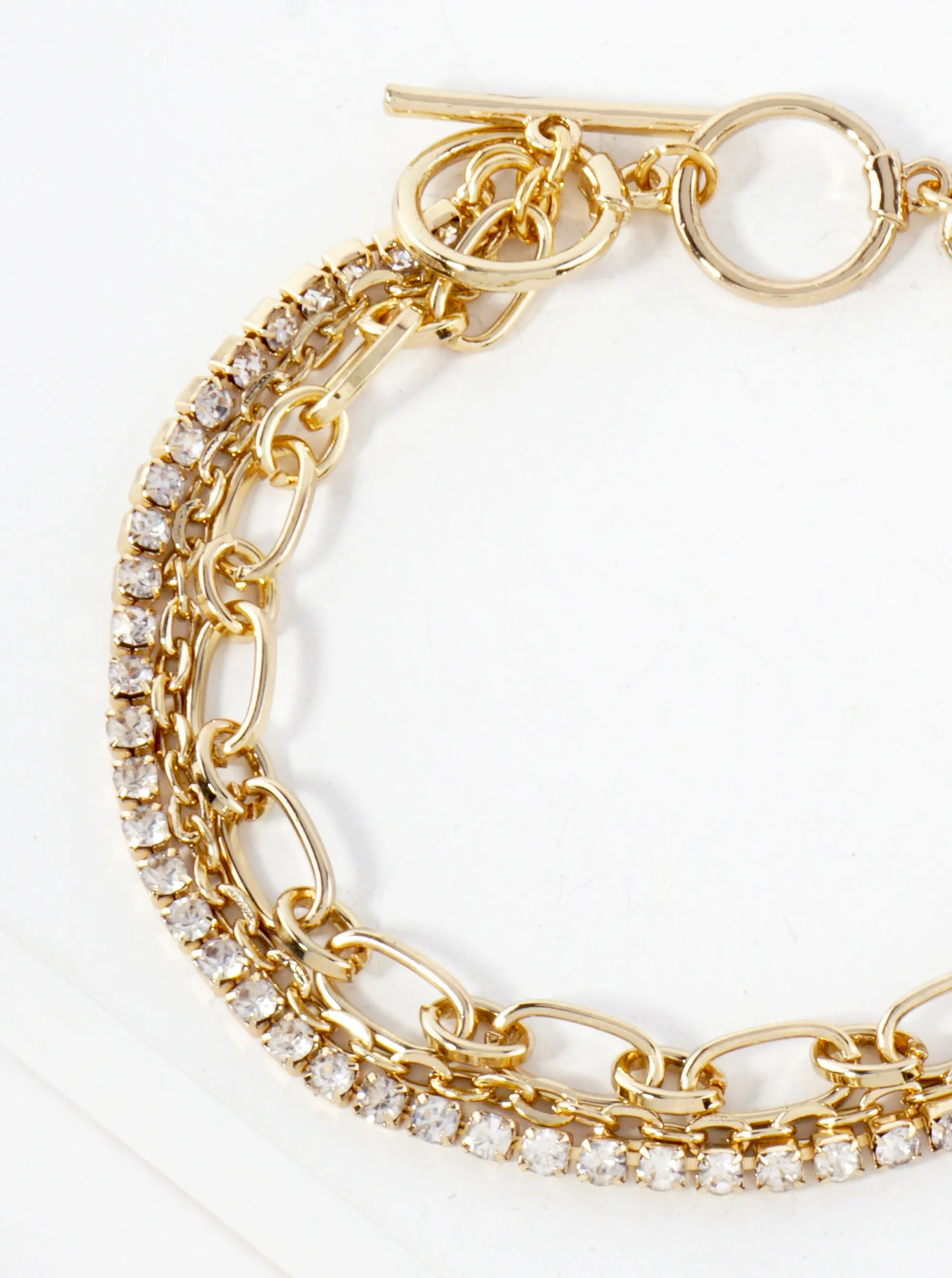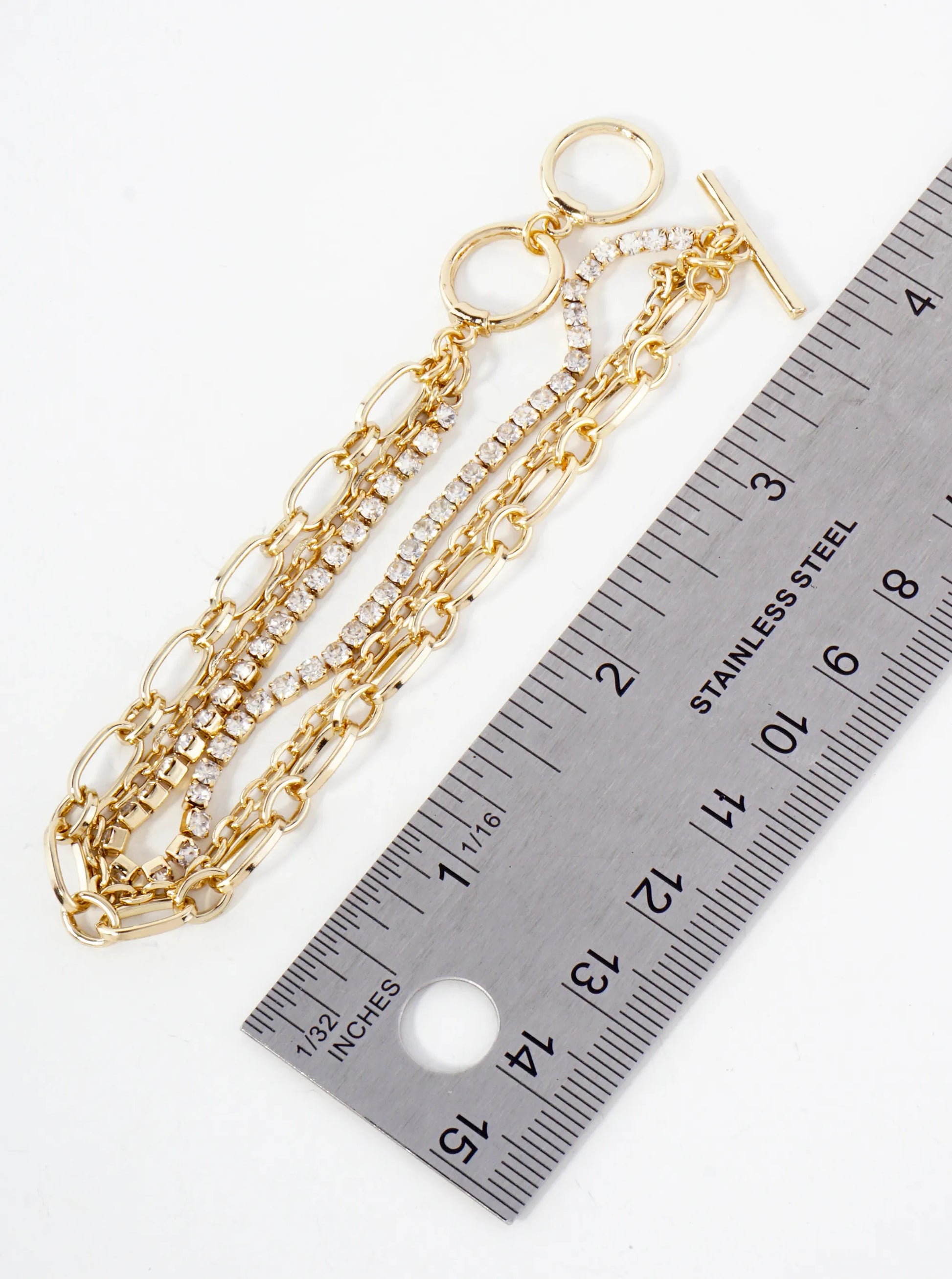 Two-Chain Rhinestone Strand Toggle-Closure Bracelet