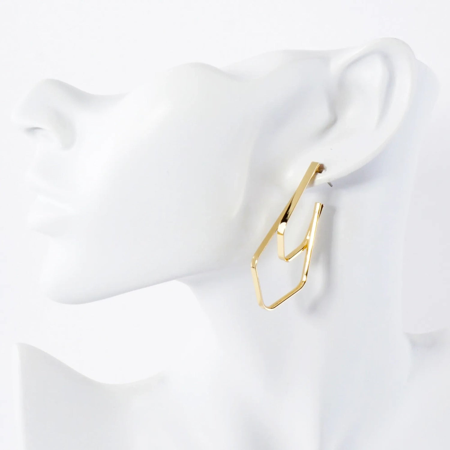 Two Overlapping Elongated Diamond Shaped 14K-Gold-Dipped Brass 45mm Hoop Earrings