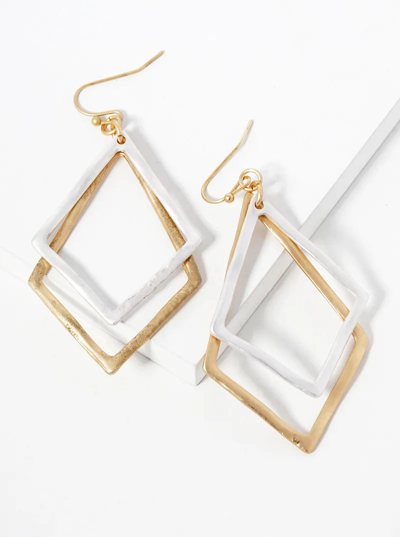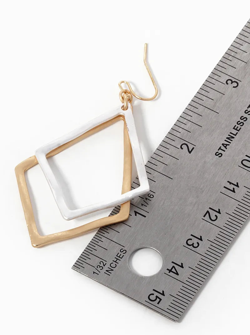 Two-Tone Double Rhombus Dangle Drop Earrings