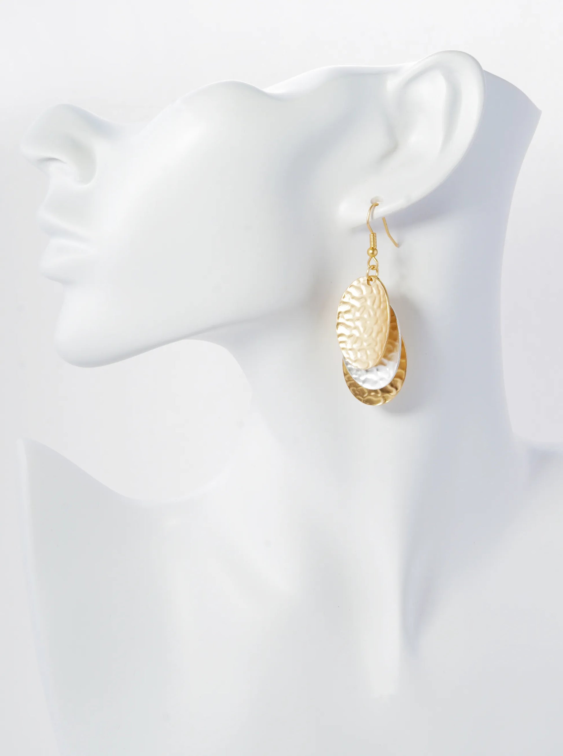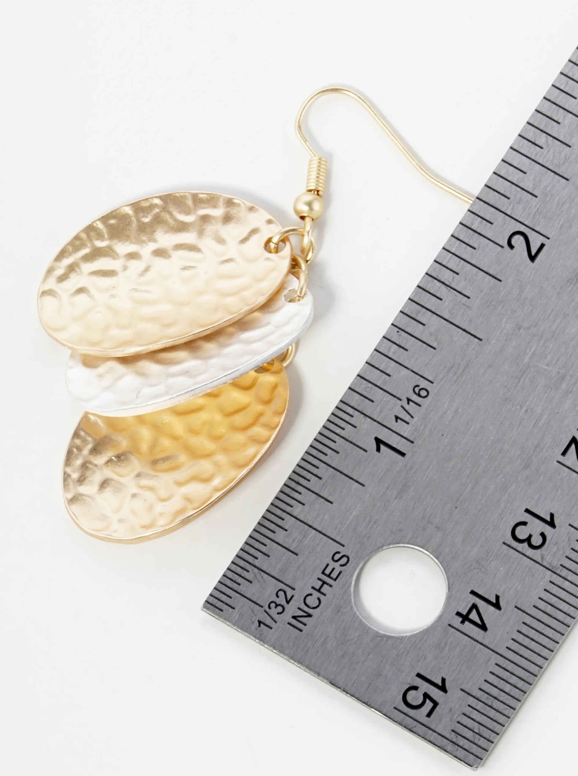 Two-Tone Hammered Metal Three Oval Drop Dangle Earrings