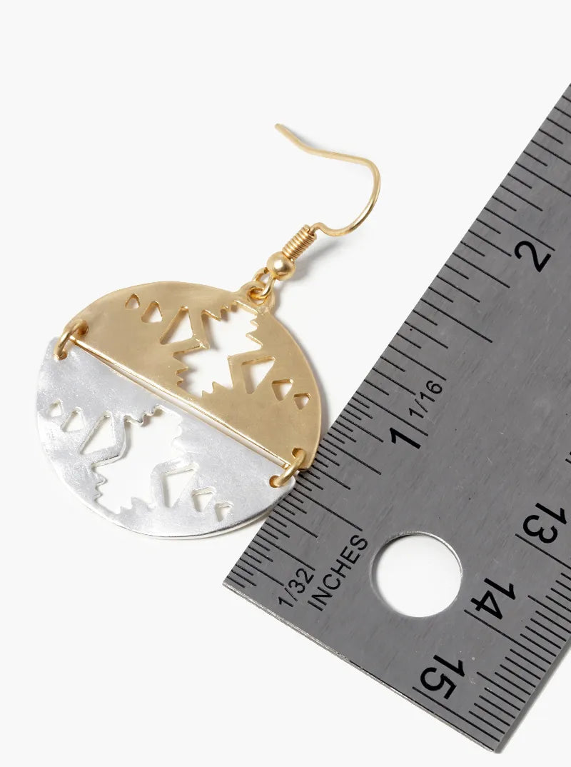 Two-Tone Navajo Aztec Pattern Cutout Metal Dangle Drop Earrings