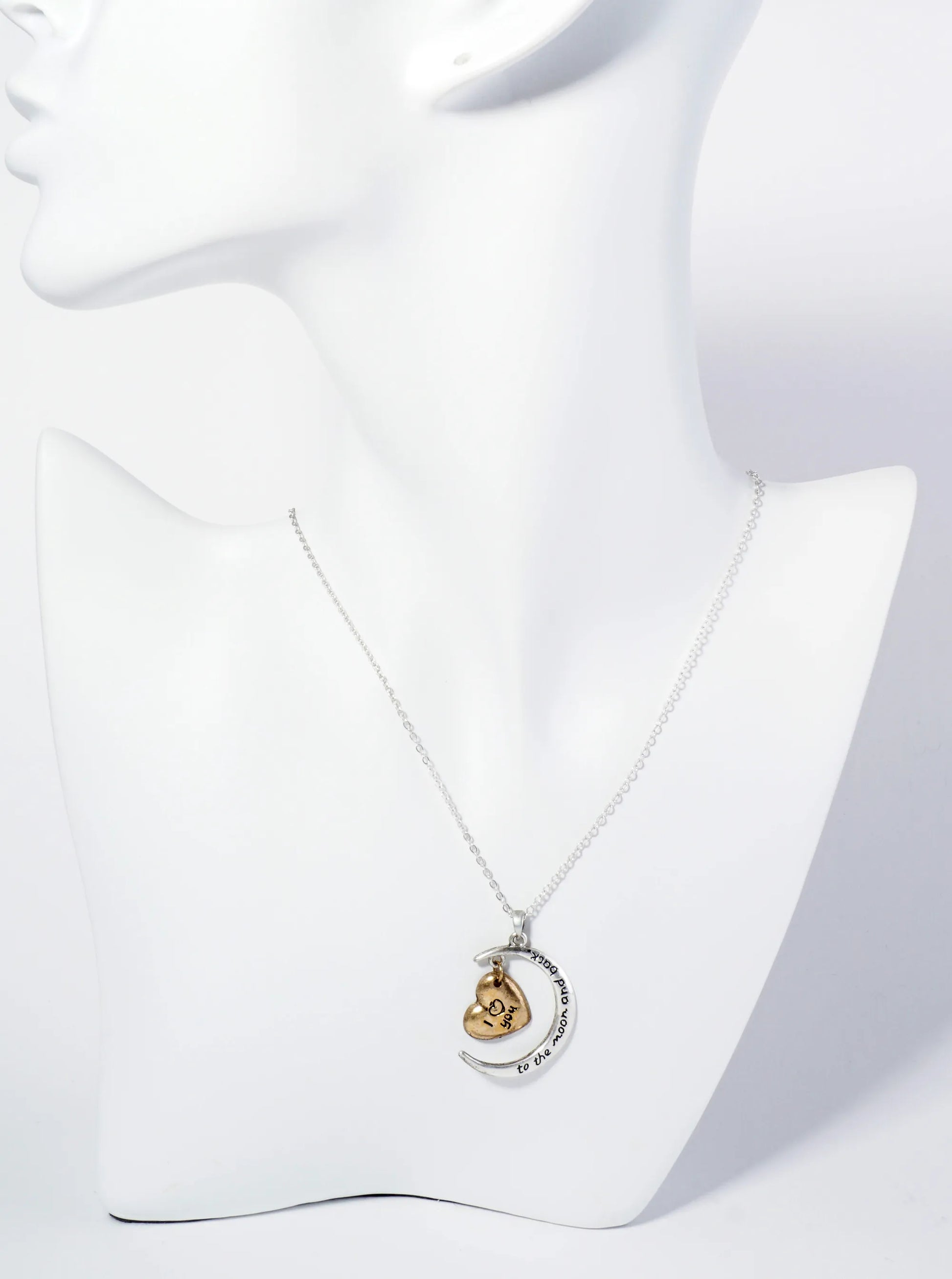 This Necklace Is Adorned With An Engraving Of The Sentimental Phrase "I Love You To The Moon And Back," Symbolizing Deep Affection And Enduring Love. The Two-tone Metal Adds Contrast And Visual Interest To The Pendant, Enhancing Its Elegance And Charm.