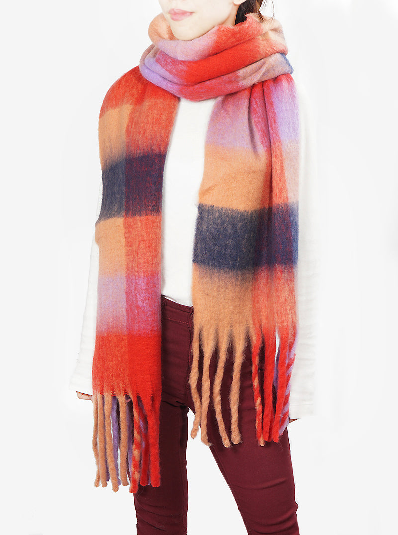 Unisex Chunky Check Oversized Oblong Scarf