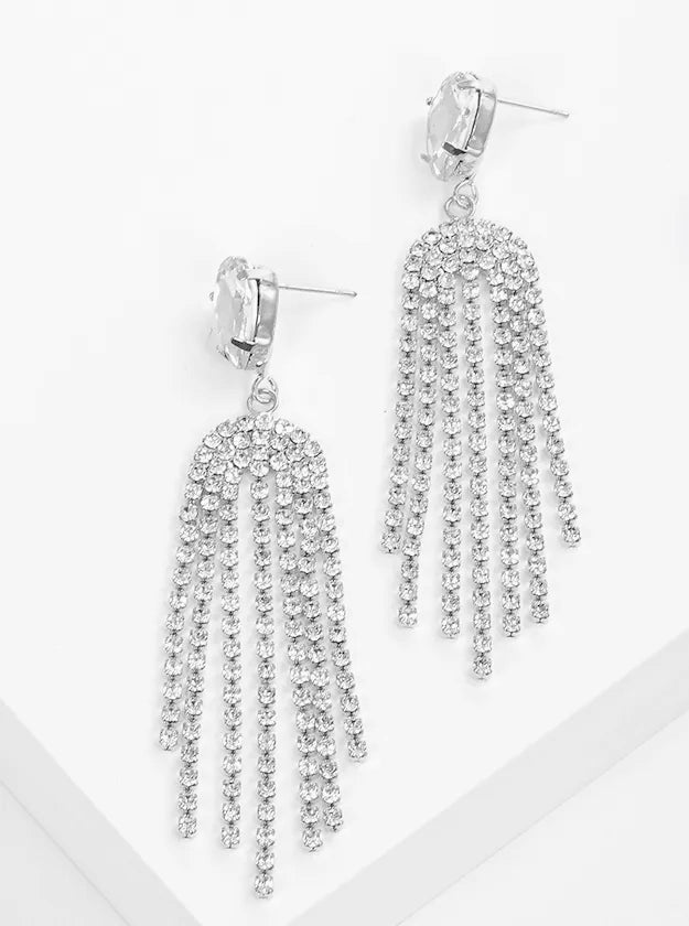 Upside Down Teardrop Rhinestone Fringe Chandelier Earrings