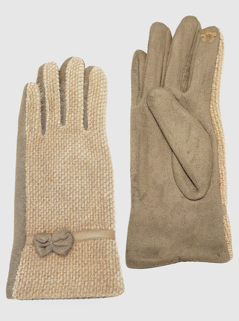 VELVET TWO TONE TOUCHSCREEN BASIC GLOVES WITH RIBBON