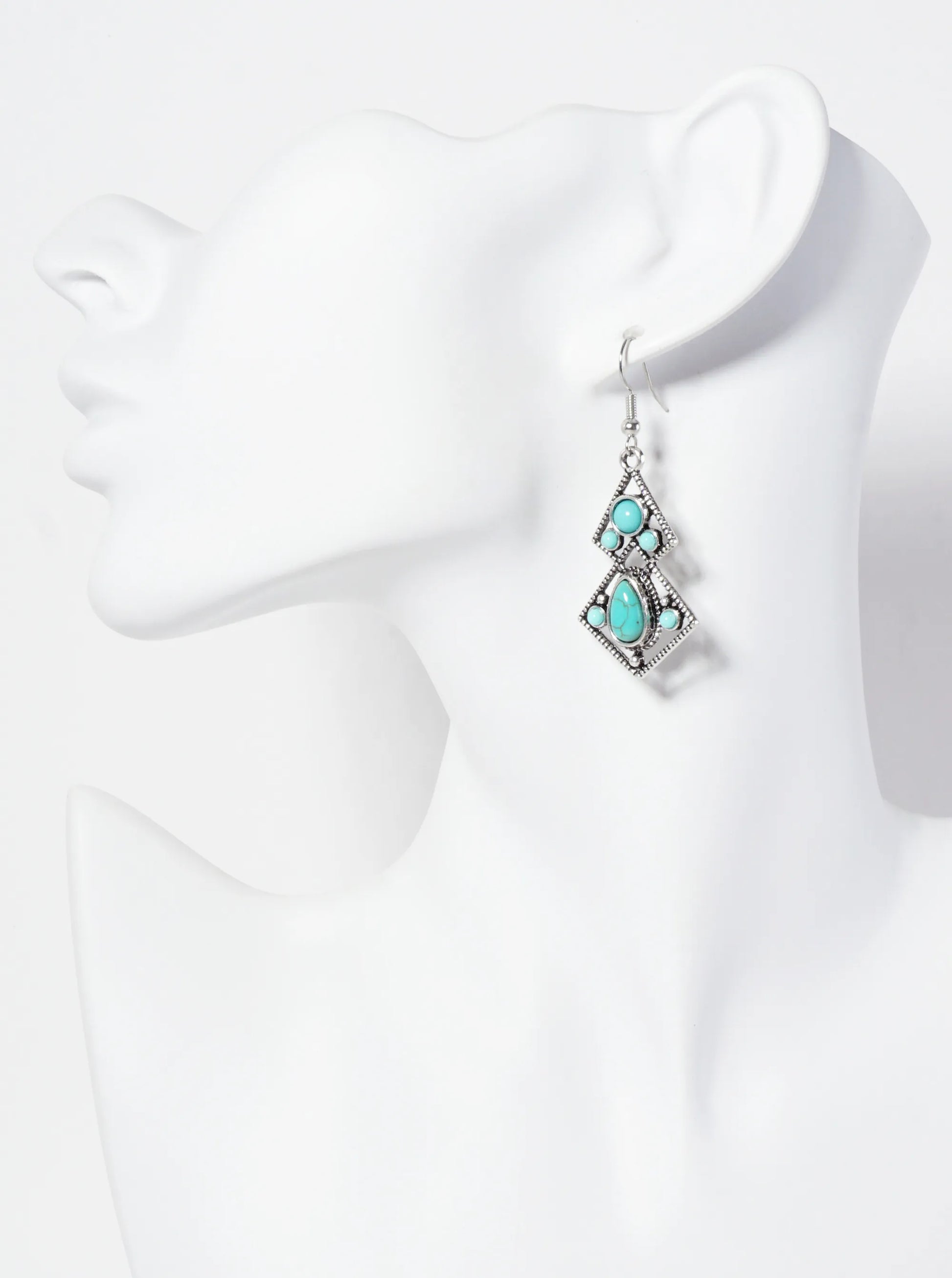 Vintage Semi-Precious Natural-Stone Geometric Bohemian Western Dangle Drop Earrings
