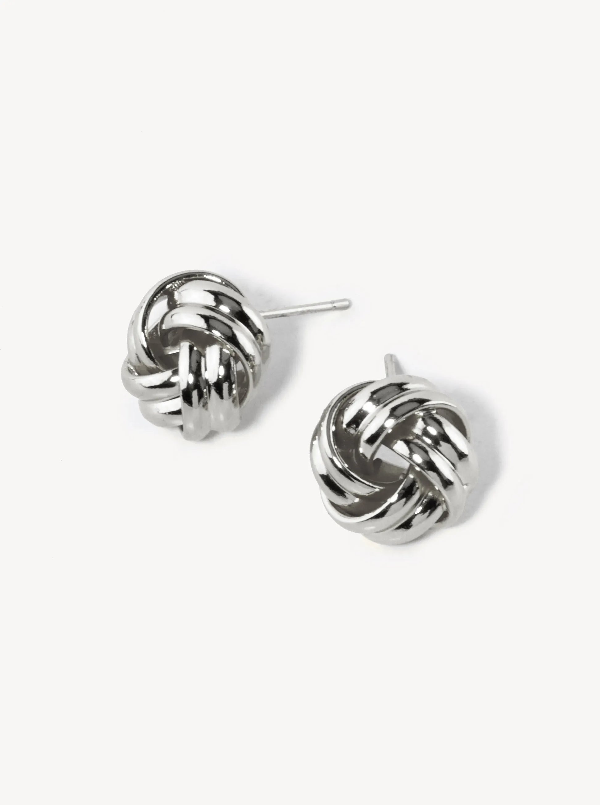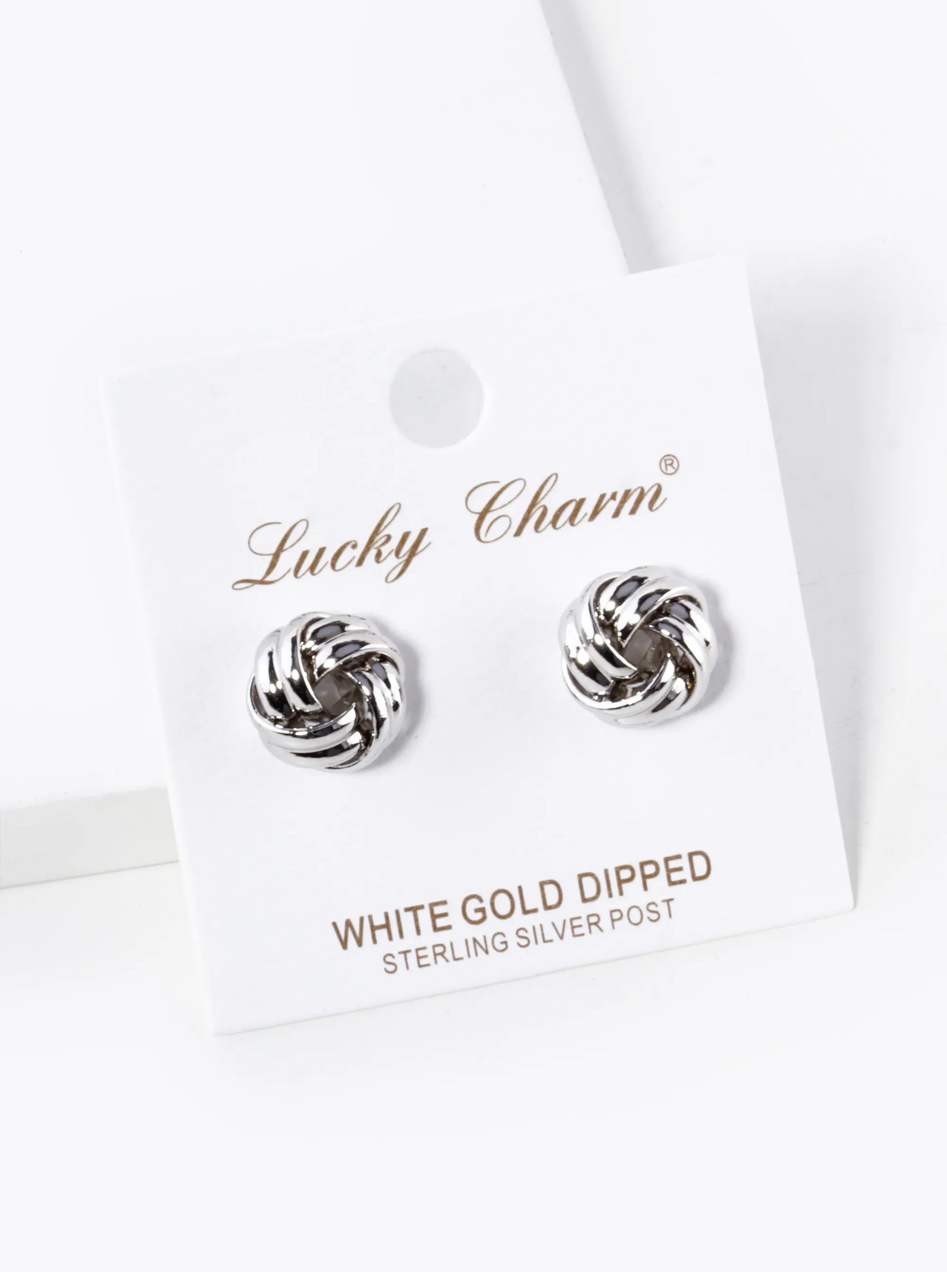 White Gold Dipped 12mm Brass Love Knot Stud Earrings