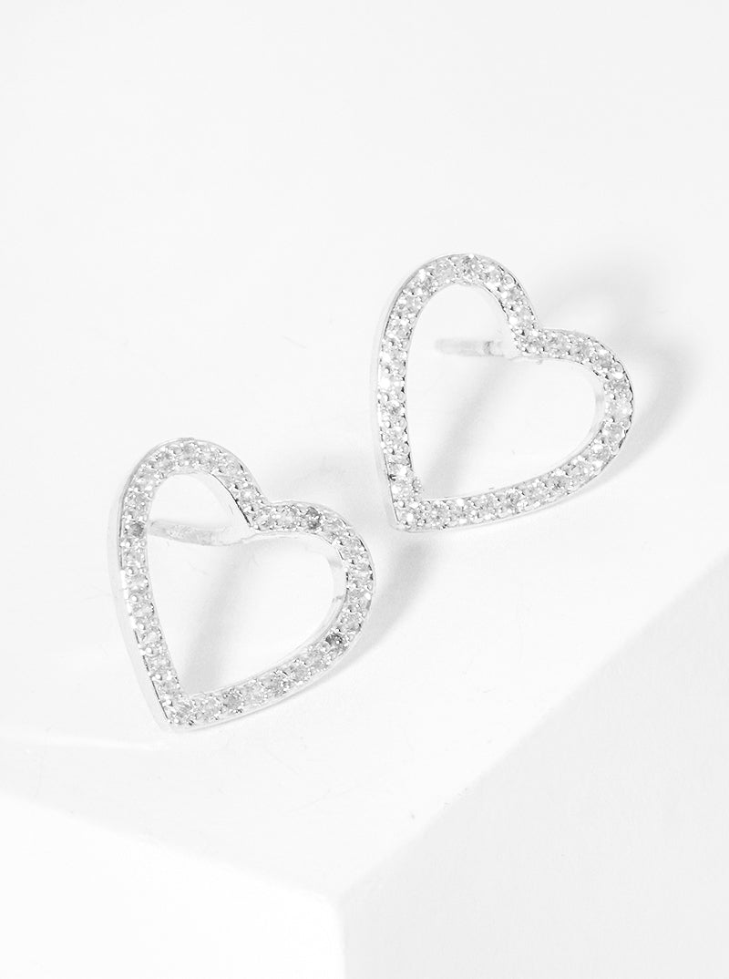 White Gold Dipped 12mm CZ Heart Sterling Silver Post Stud Earrings