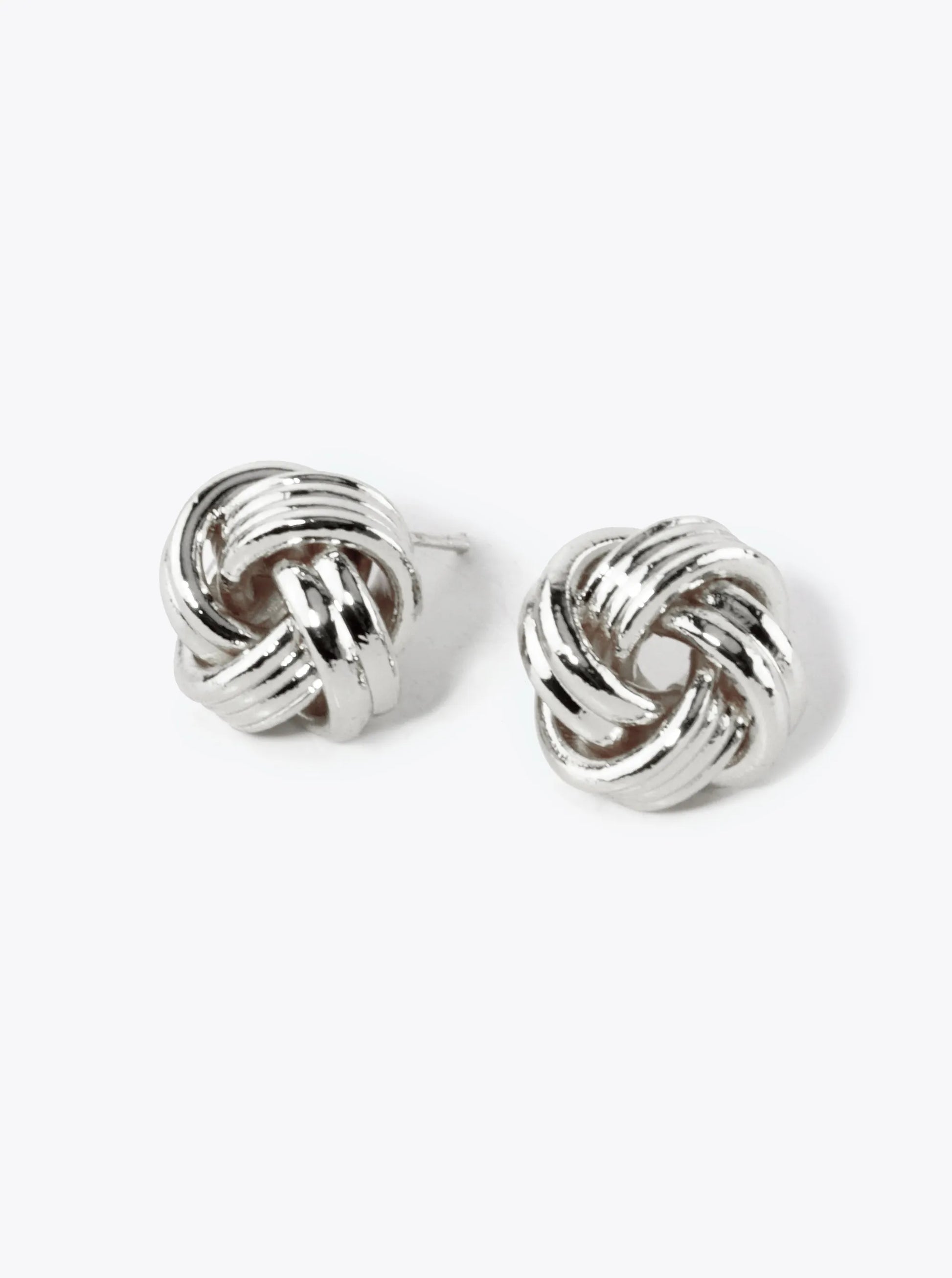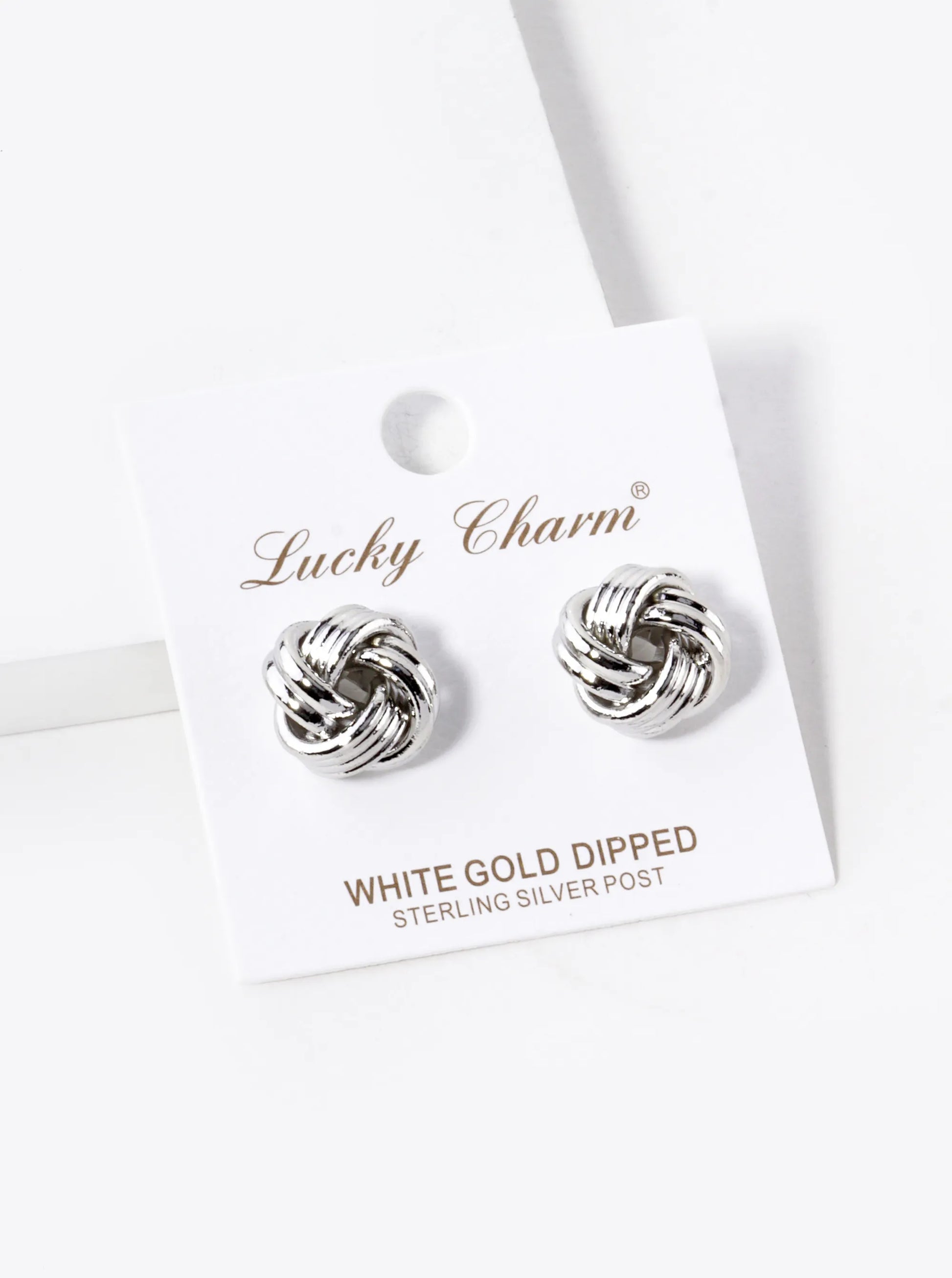 White Gold Dipped 13mm Textured Brass Love Knot Stud Earrings