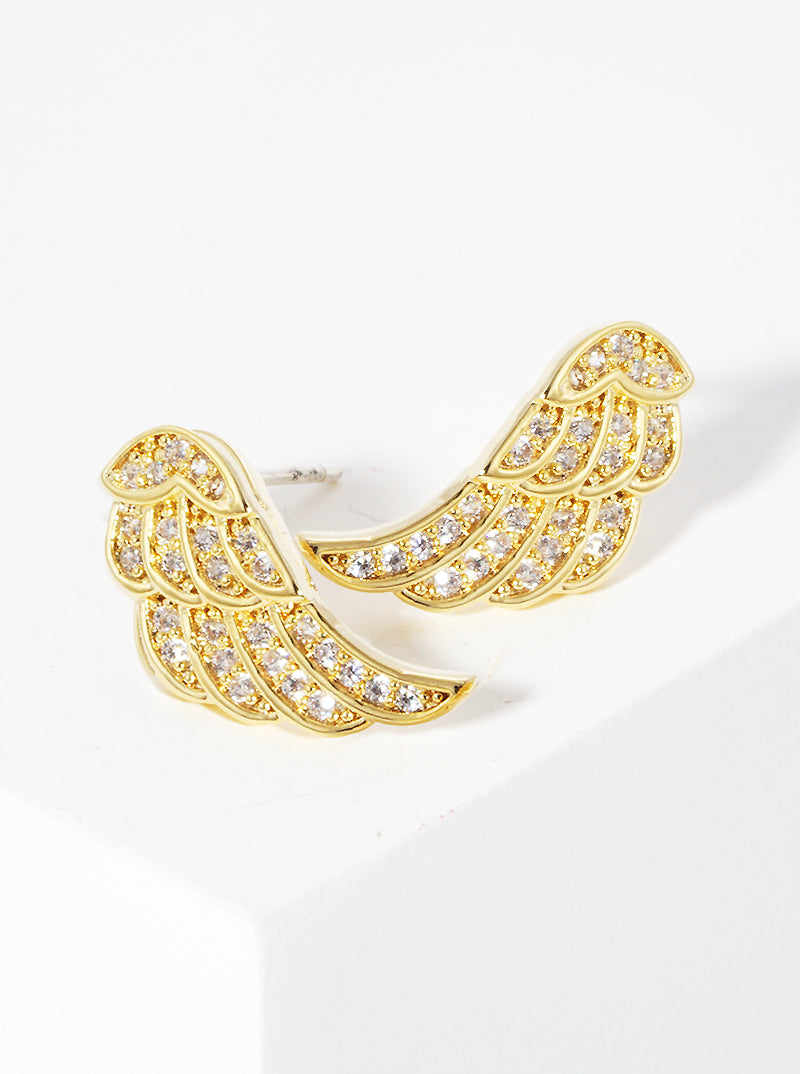 White Gold Dipped 15mm Angel Wings CZ Pave Sterling Silver Post Stud Earrings