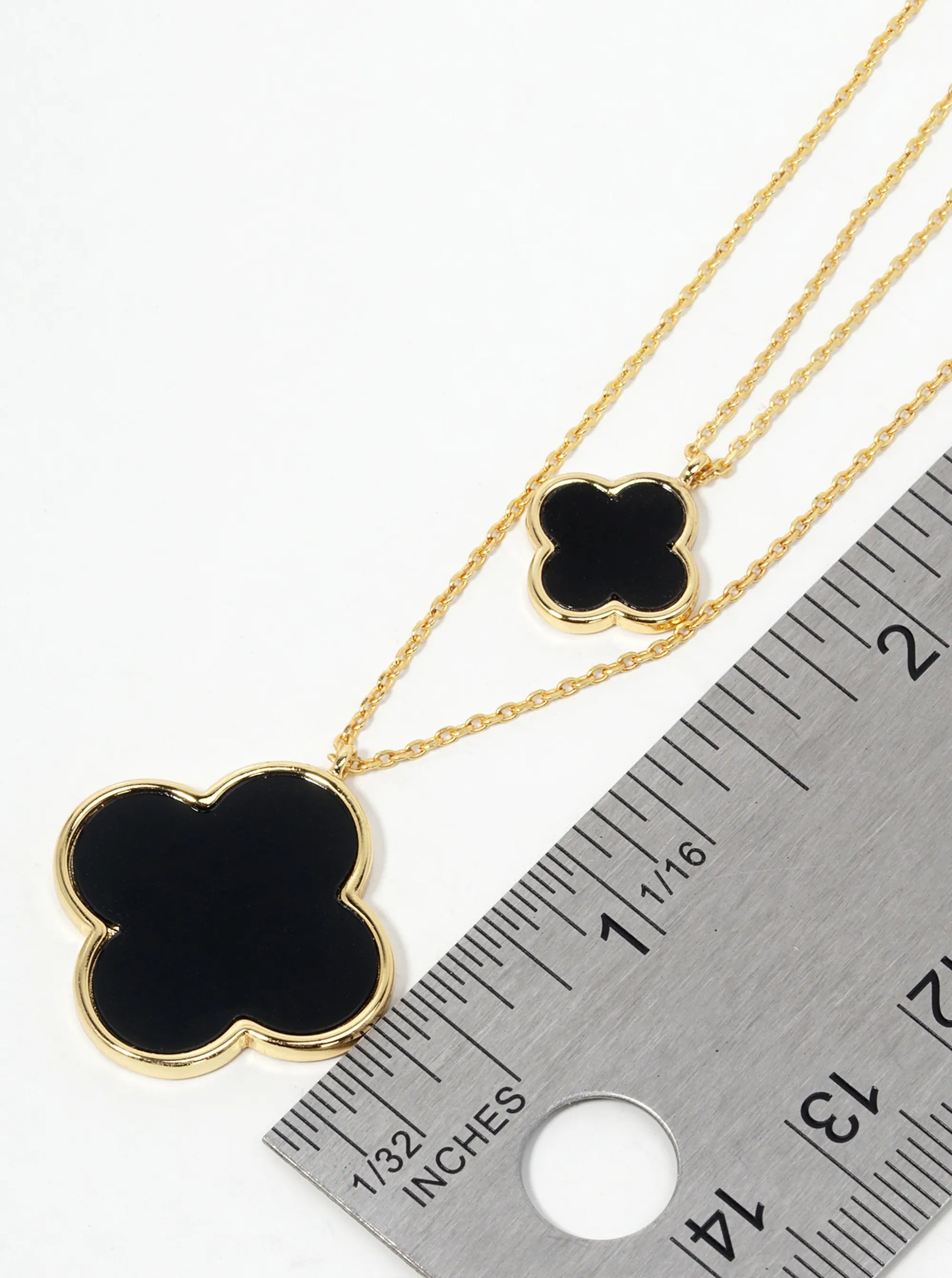 White Gold Dipped 17 And 12mm Double Quatrefoil Pendant Layered Necklace
