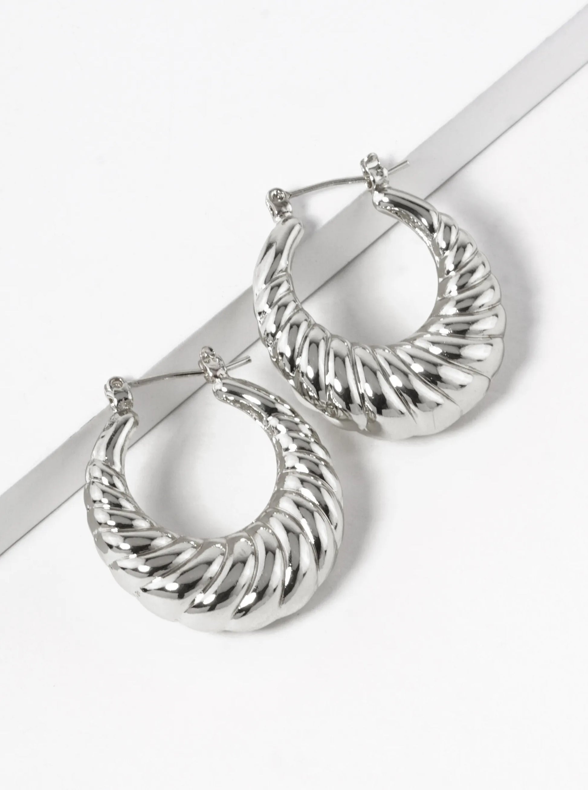 White Gold Dipped 25mm Textured Hollow Puffy Hoop Earrings