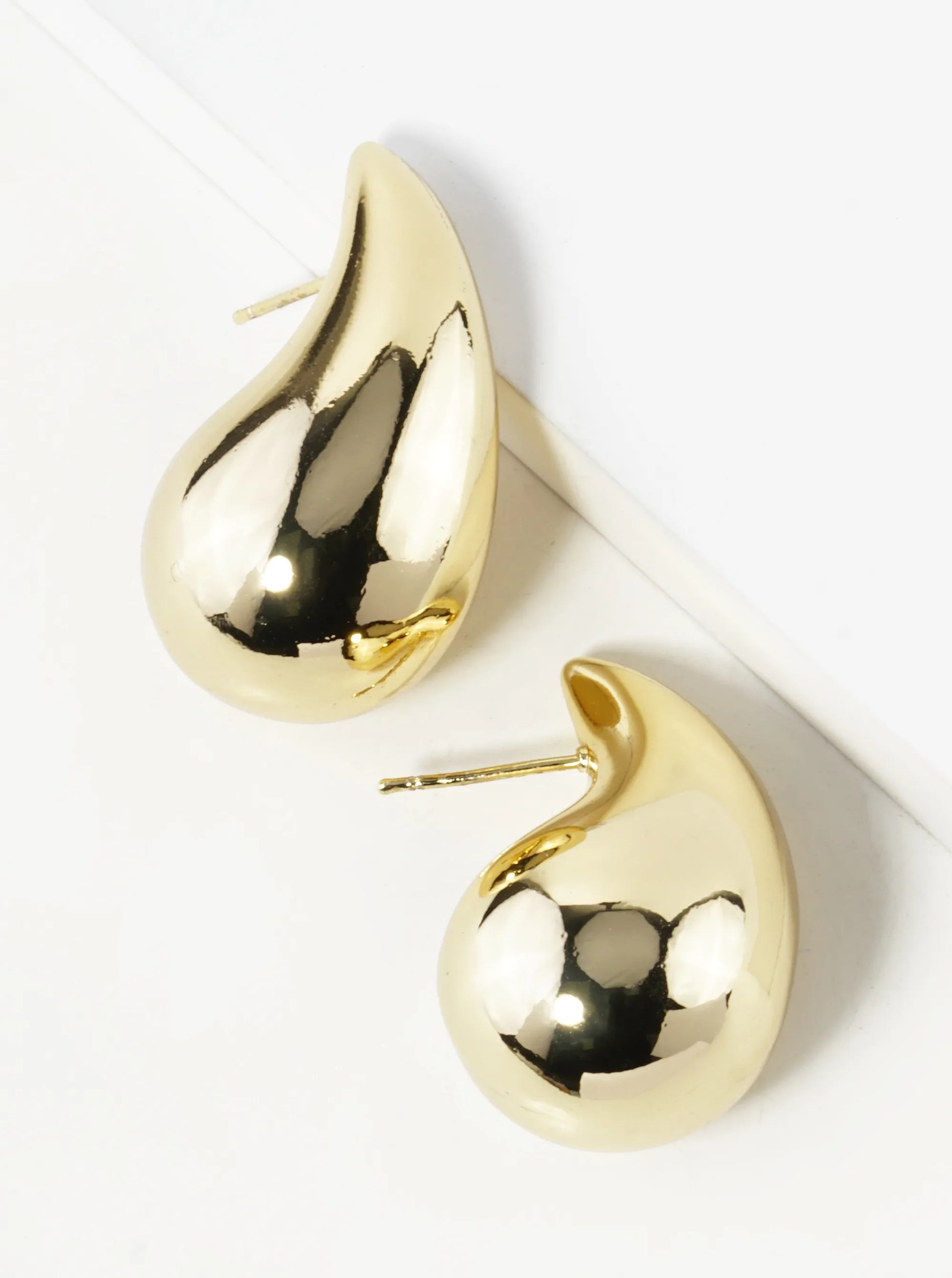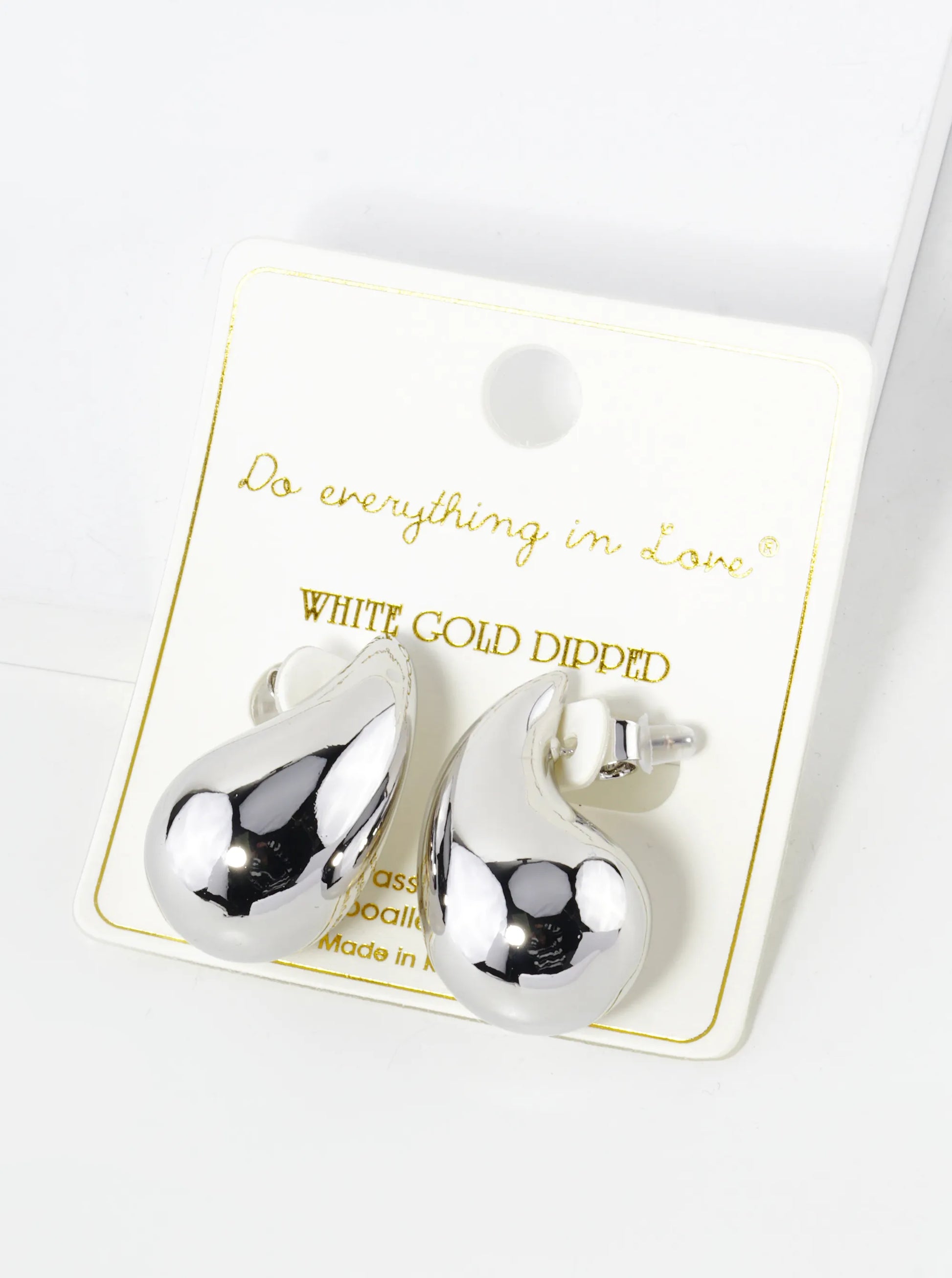 White Gold Dipped 3D Hollow Puffy Teardrop Stud Earrings