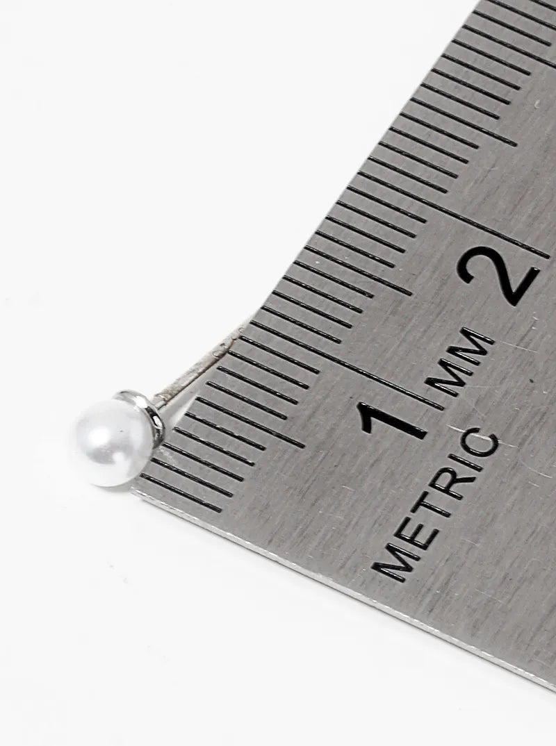 White Gold Dipped 3mm Glass Pearl Post Stud Earrings
