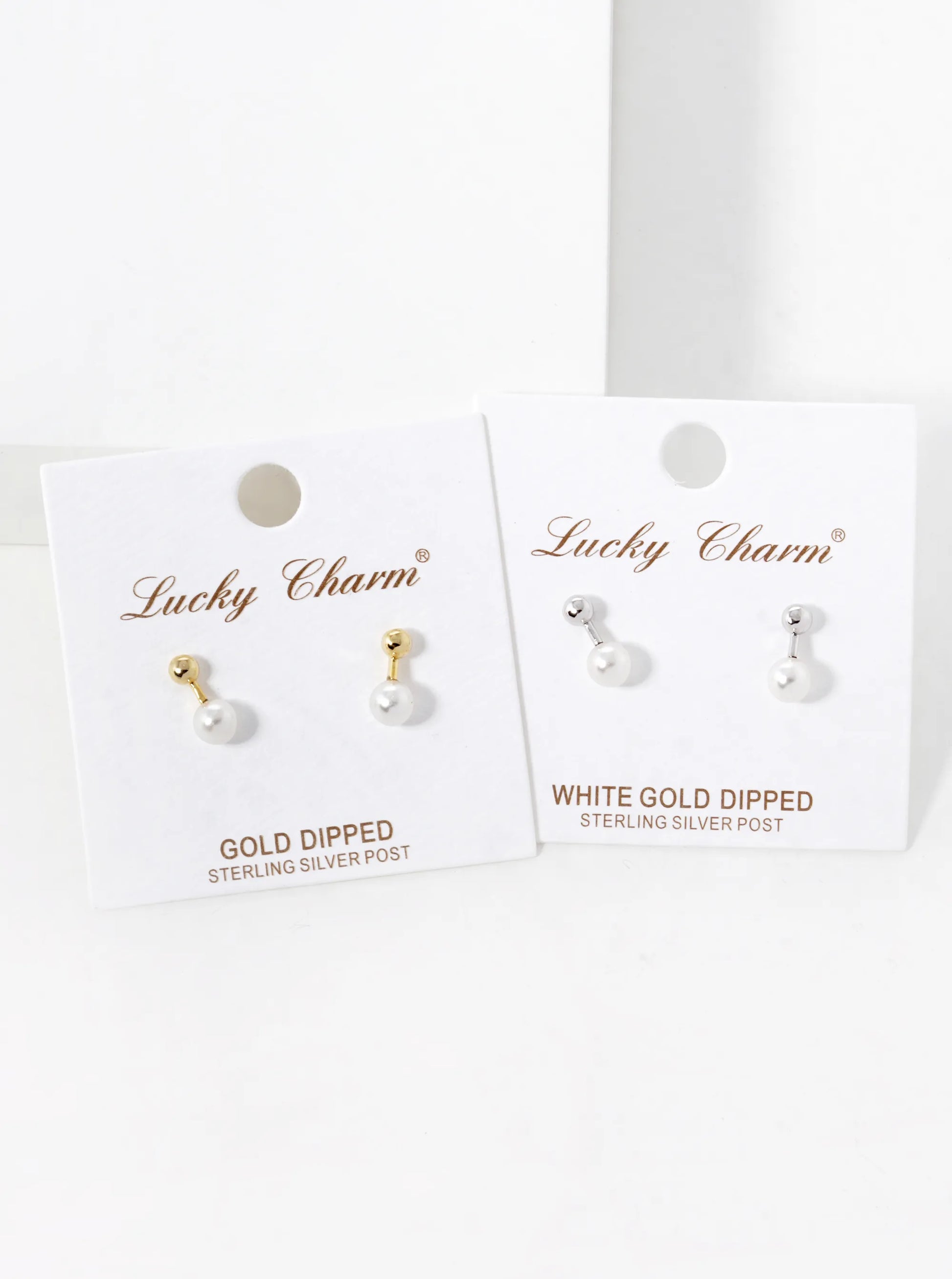 White Gold Dipped 5mm Pearl Drop Stud Earrings