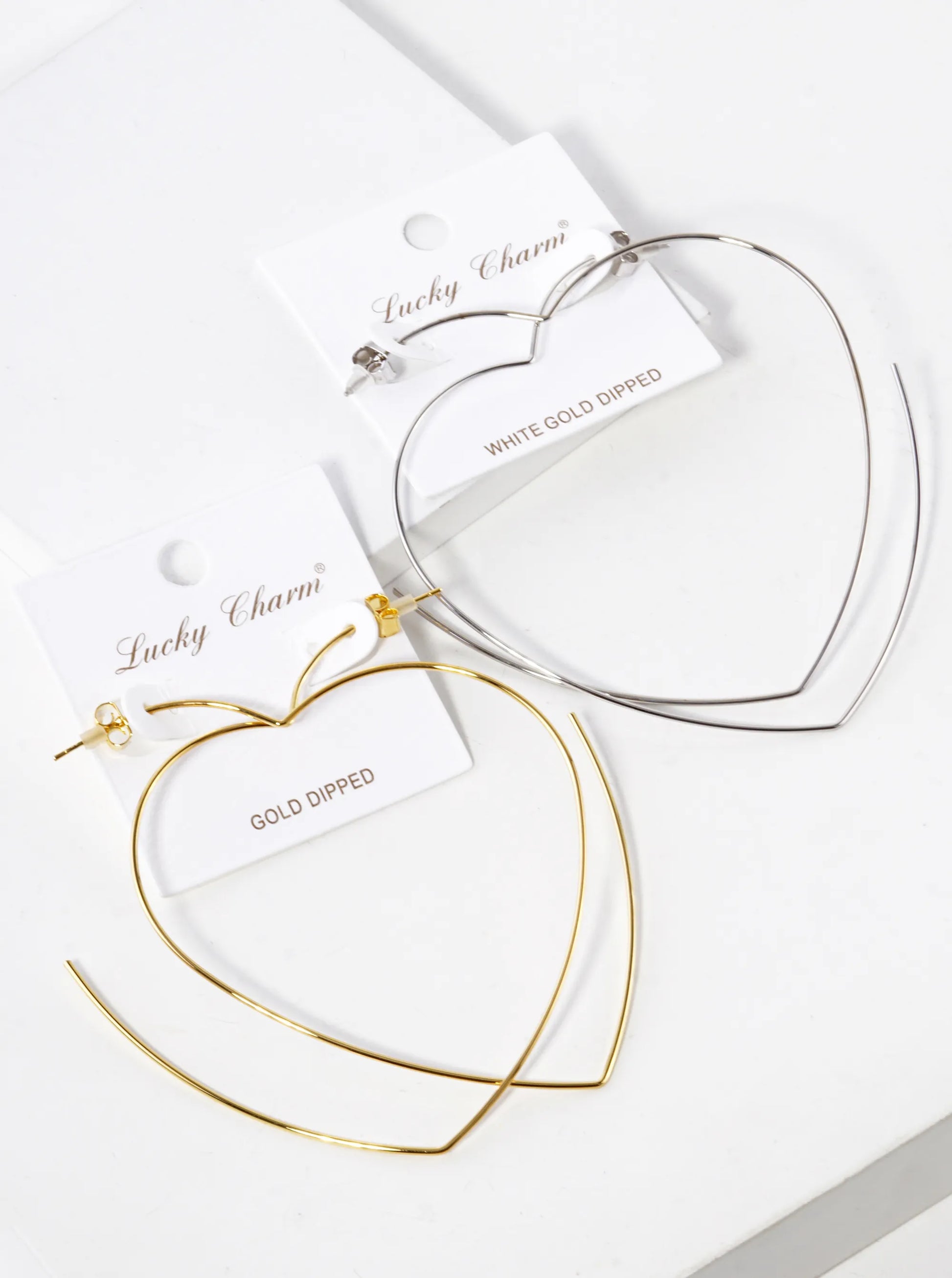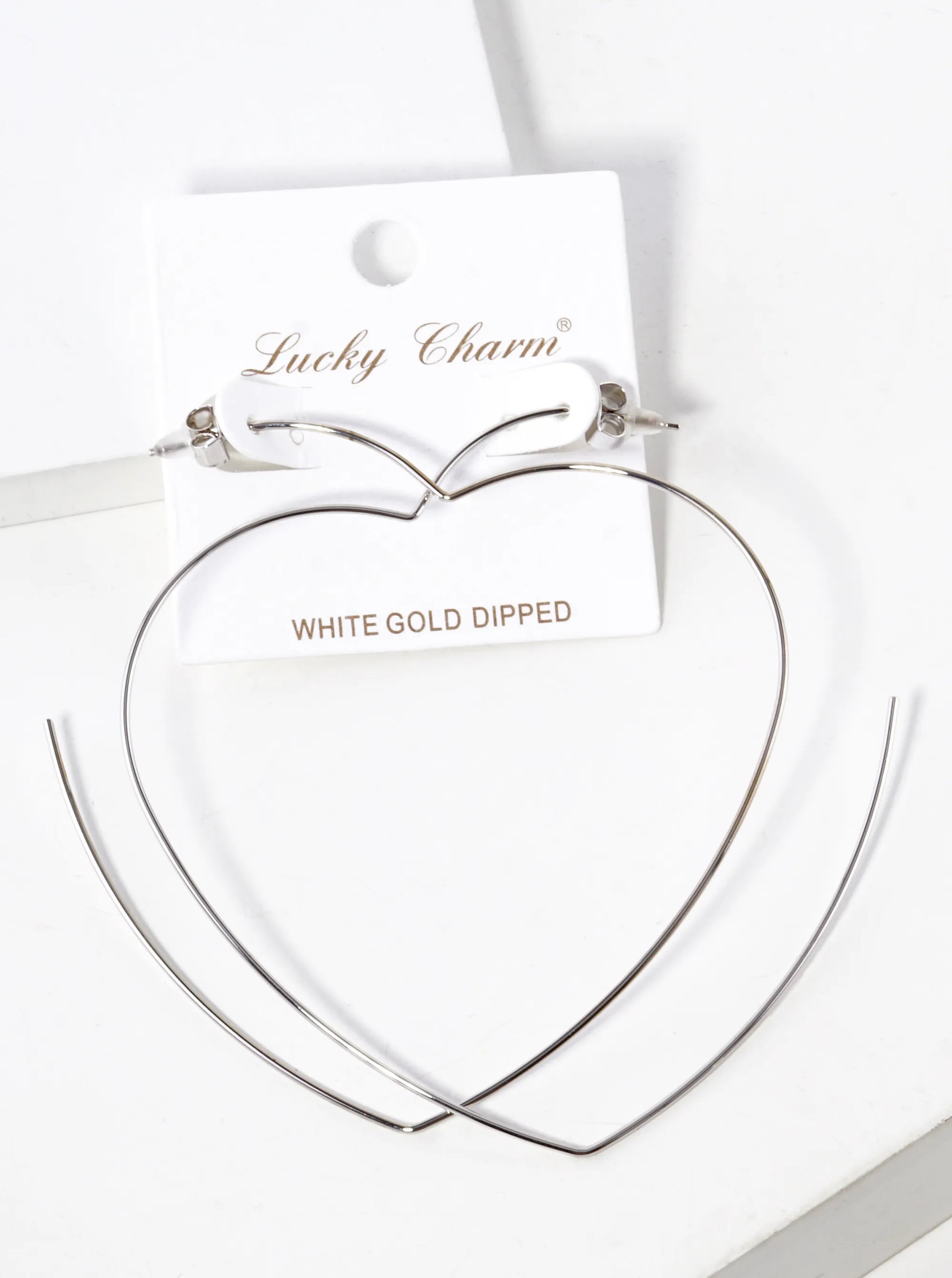 White Gold Dipped 80mm Heart Shape Lightweight Open Hoop Earrings