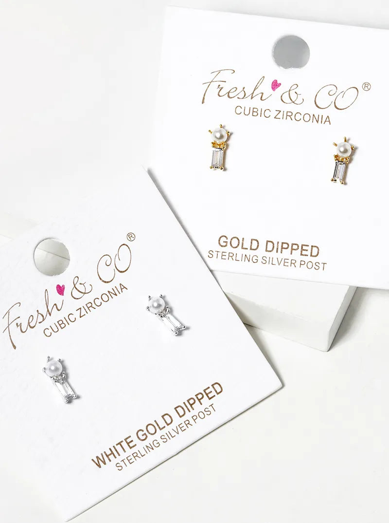 Add A Sparkle To Any Look With Our Beautiful Sterling Silver Post Pearl Baguette Cubic Zirconia Stud Earrings! They Go With Almost Any Outfit, In Any Season, And Will Fly Off The Shelves.