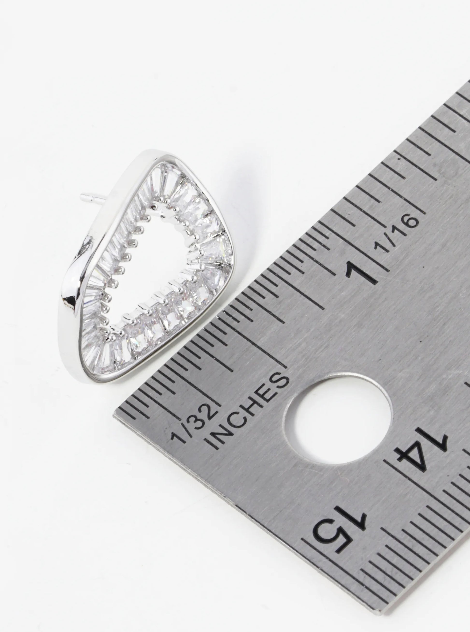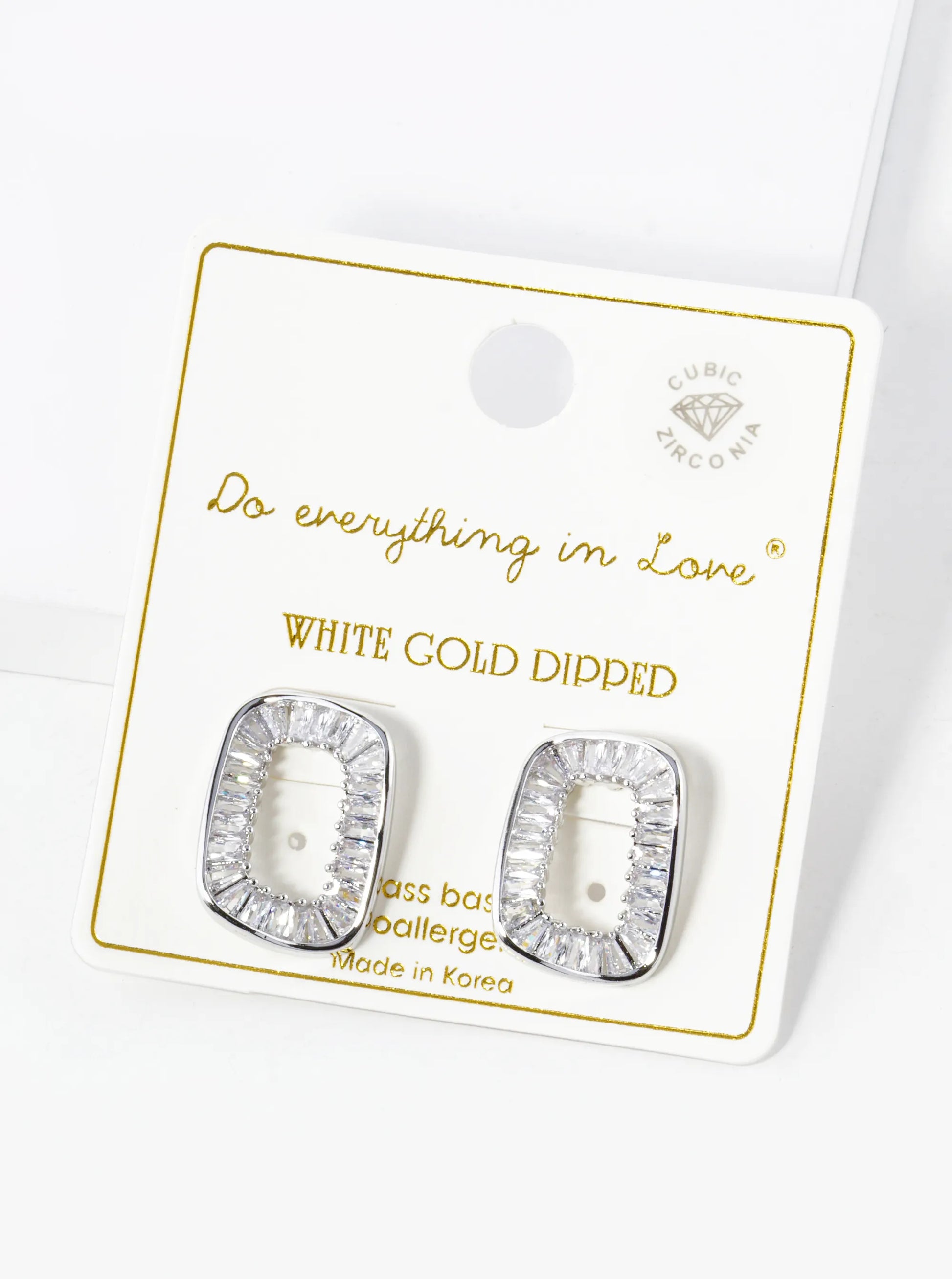 Exuding Contemporary Charm With A Hint Of Classic Allure, These Stud Earrings Are A Testament To Refined Taste And Exquisite Craftsmanship. Each Earring Showcases A Wavy Rectangle Shape Adorned With Shimmering Baguette-cut Cubic Zirconia Stones, Meticulously Arranged In A Pave Setting.