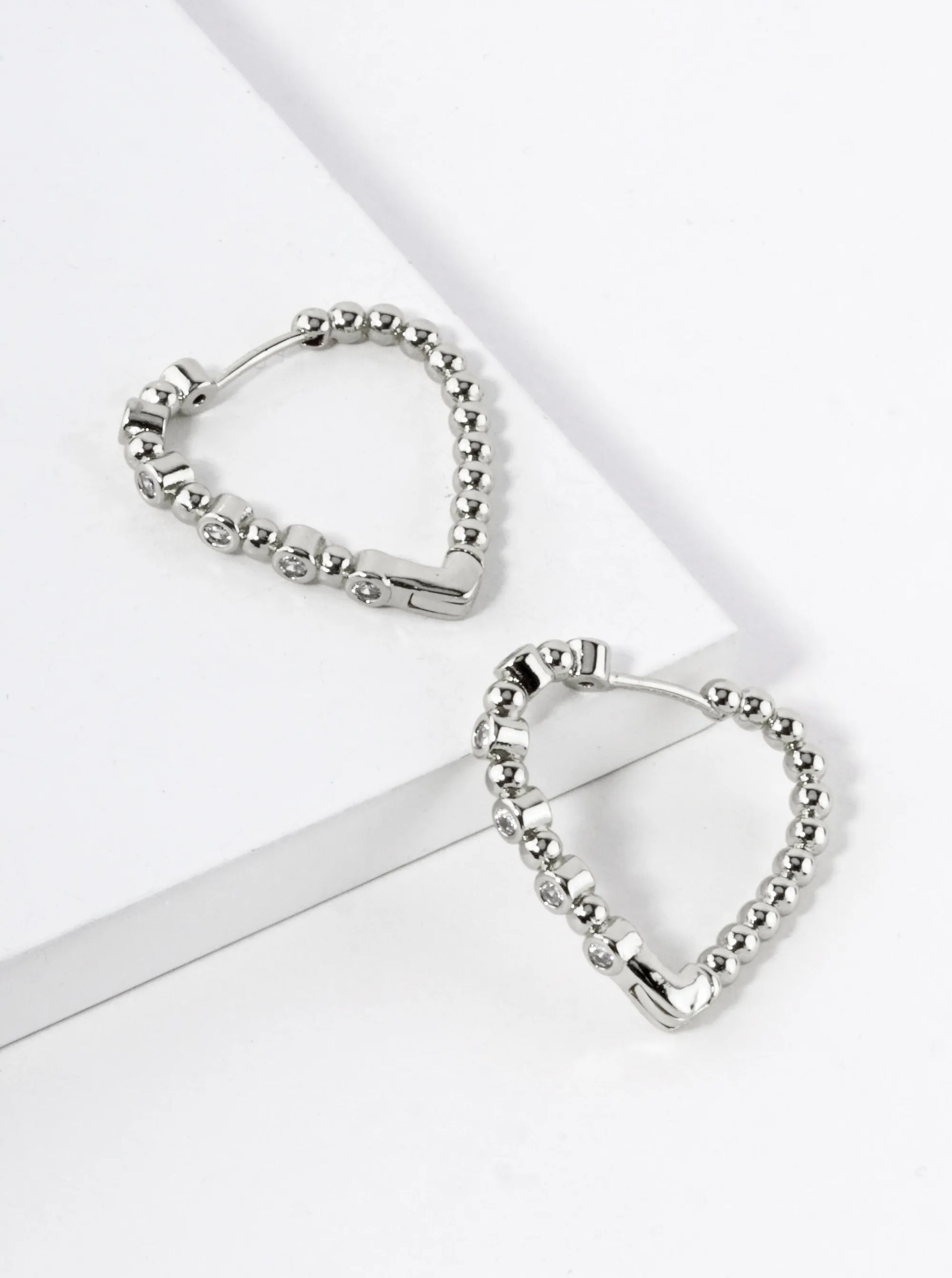 The Combination Of The Ball-textured Surface, Heart-shaped Hoops, And CZ Stone Embellishments Creates A Visually Appealing And Stylish Accessory.