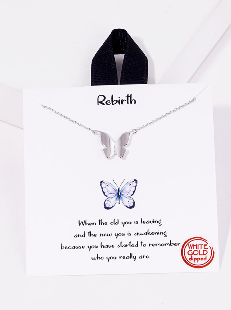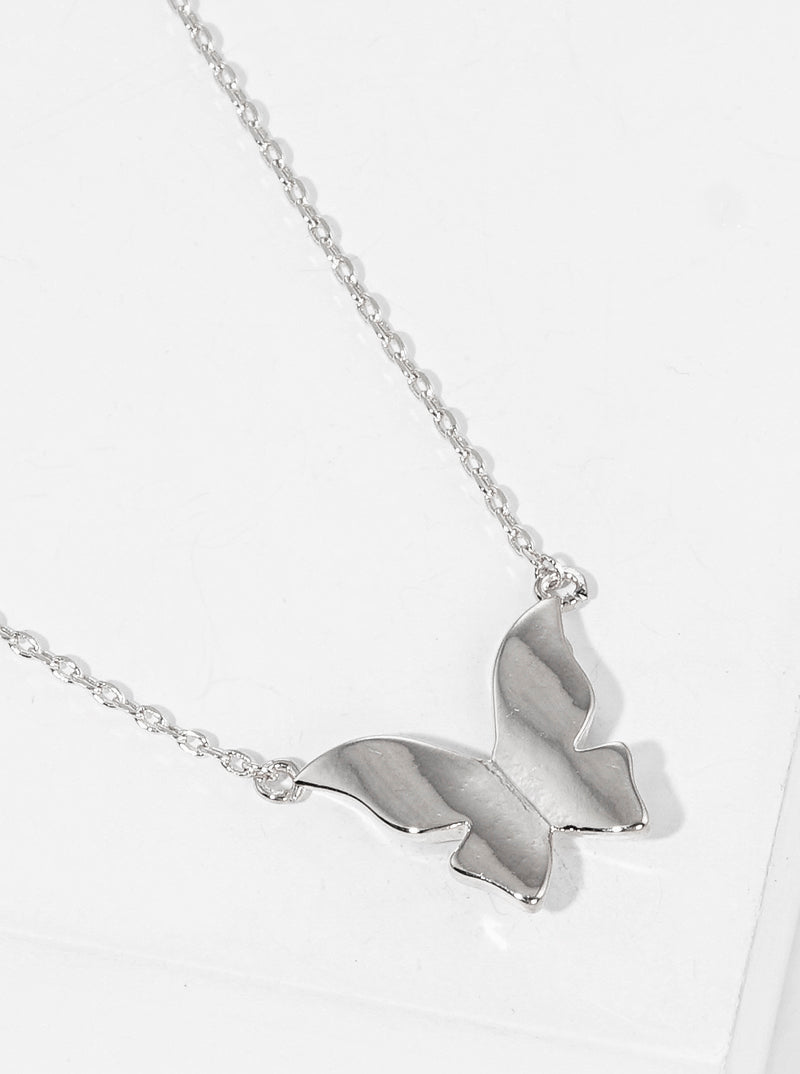 White Gold Dipped Brass Butterfly Pendant Necklace