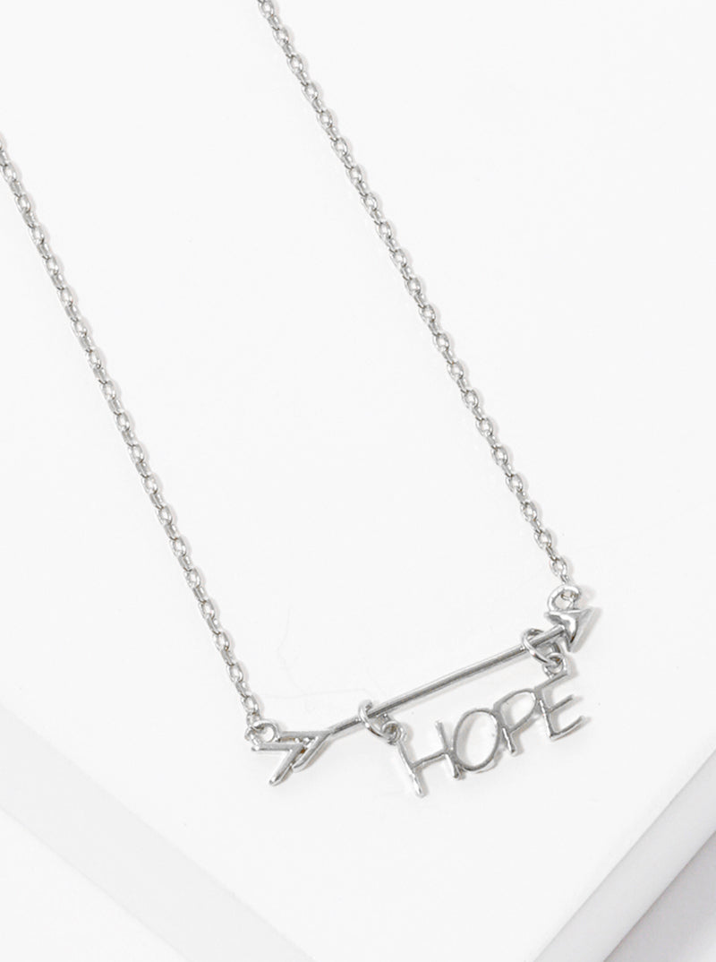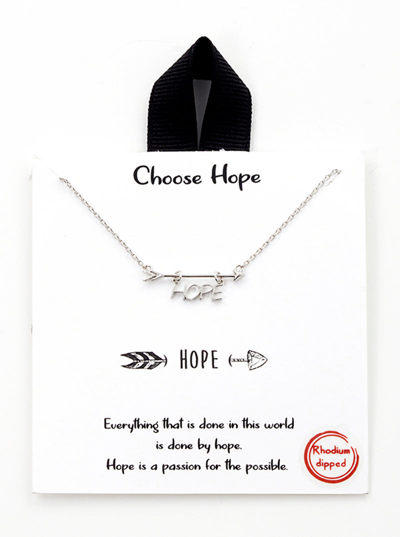 White Gold Dipped Choose Hope Hanging Arrow Pendant Necklace