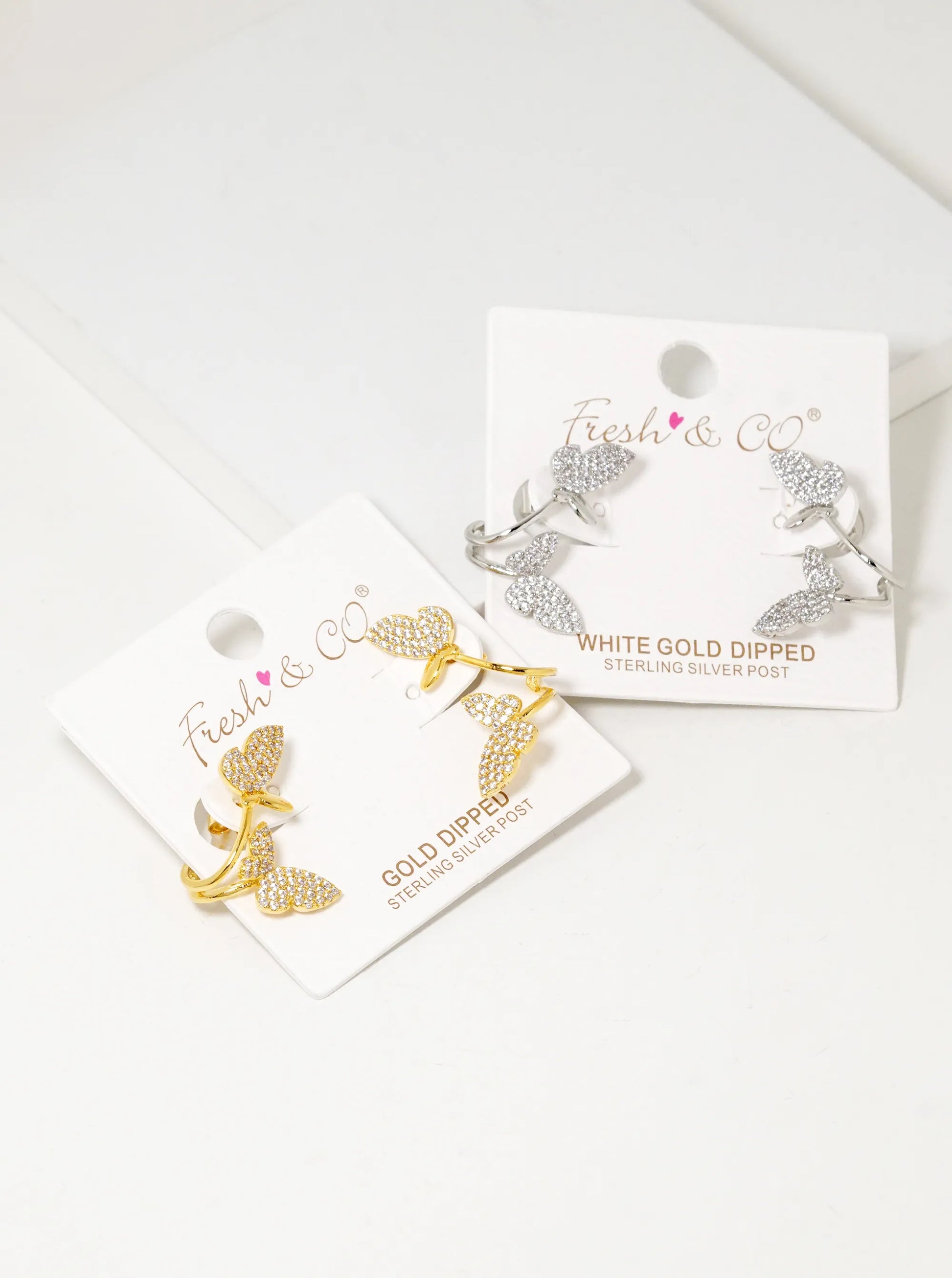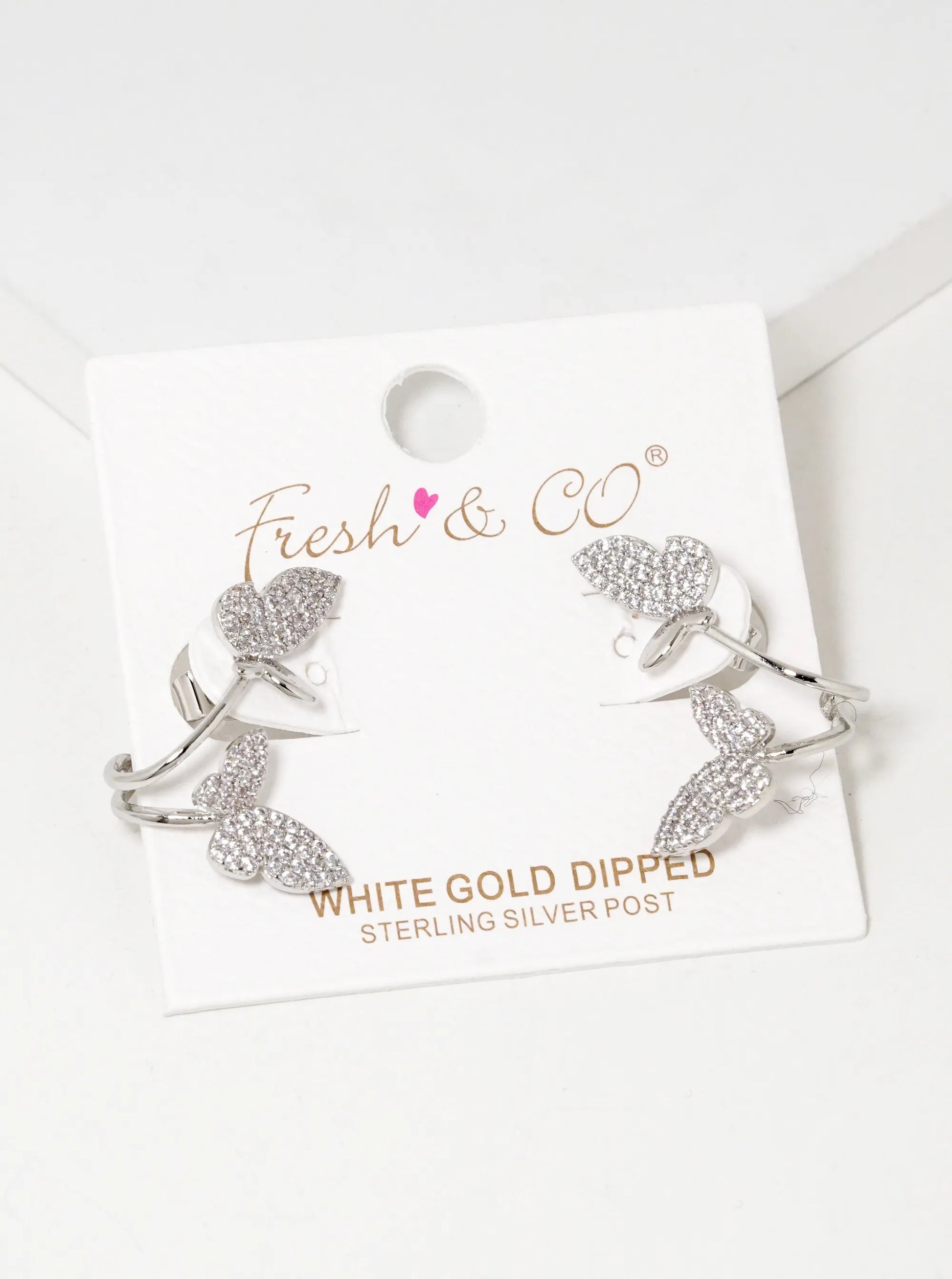 White Gold Dipped CZ Pave 15mm Butterfly Stud Earrings