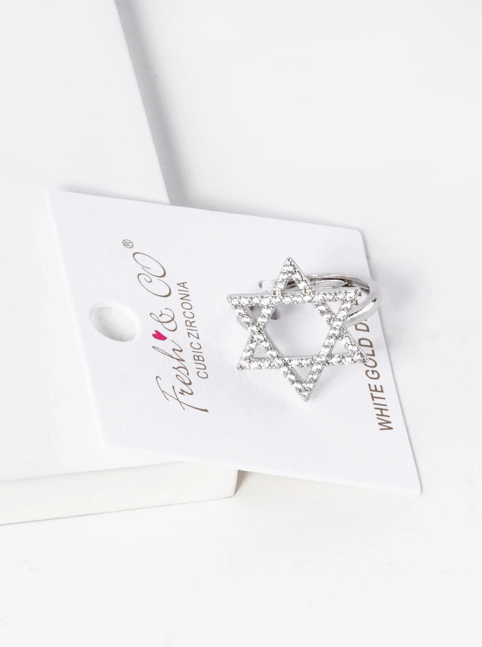White Gold Dipped CZ Pave 22mm Star Of David Adjustable Ring