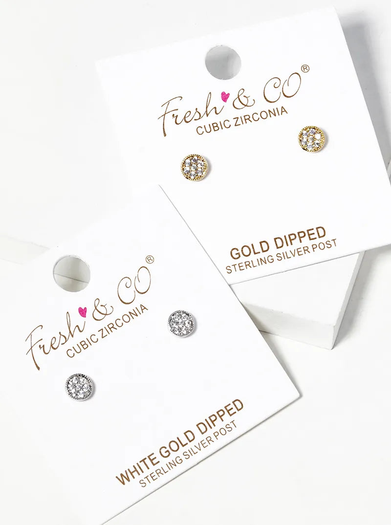 White Gold Dipped CZ Pave 4mm Round Post Stud Earrings
