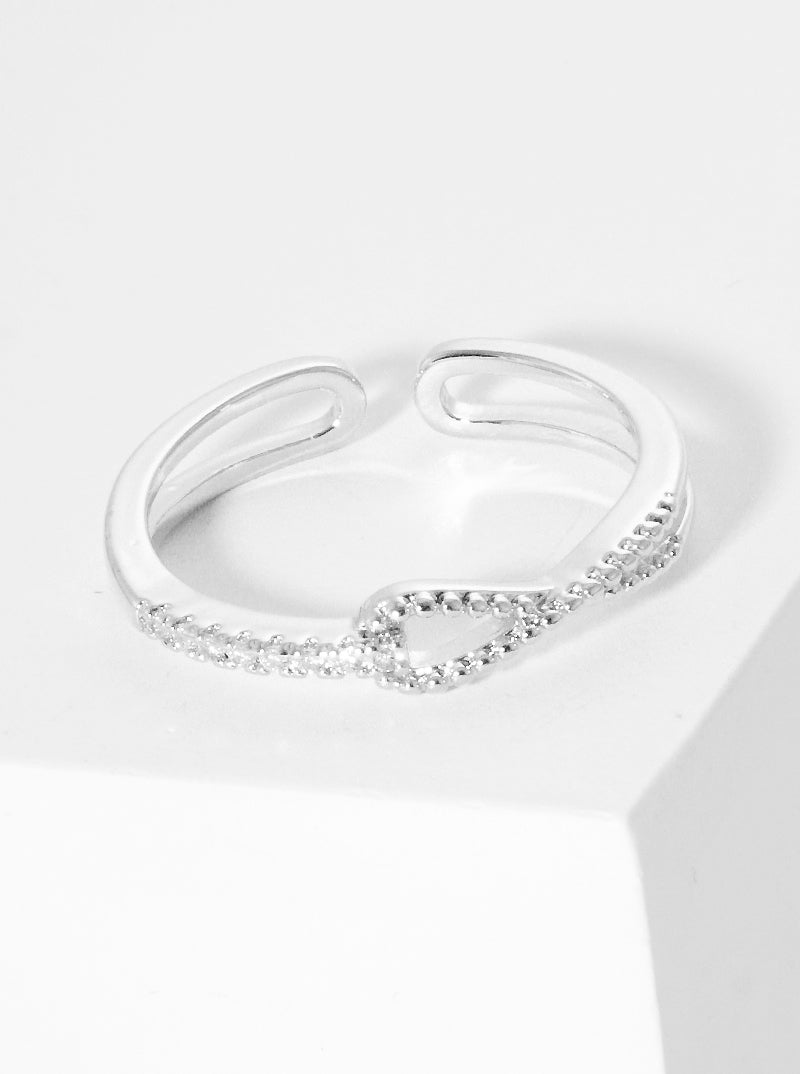 White Gold Dipped CZ Pave Adjustable Cuff Ring