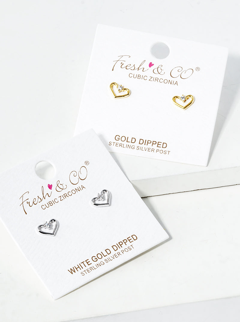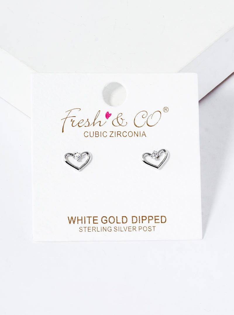 White Gold Dipped CZ Pave Bar With Pearl Post Stud Earrings