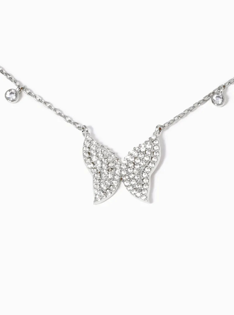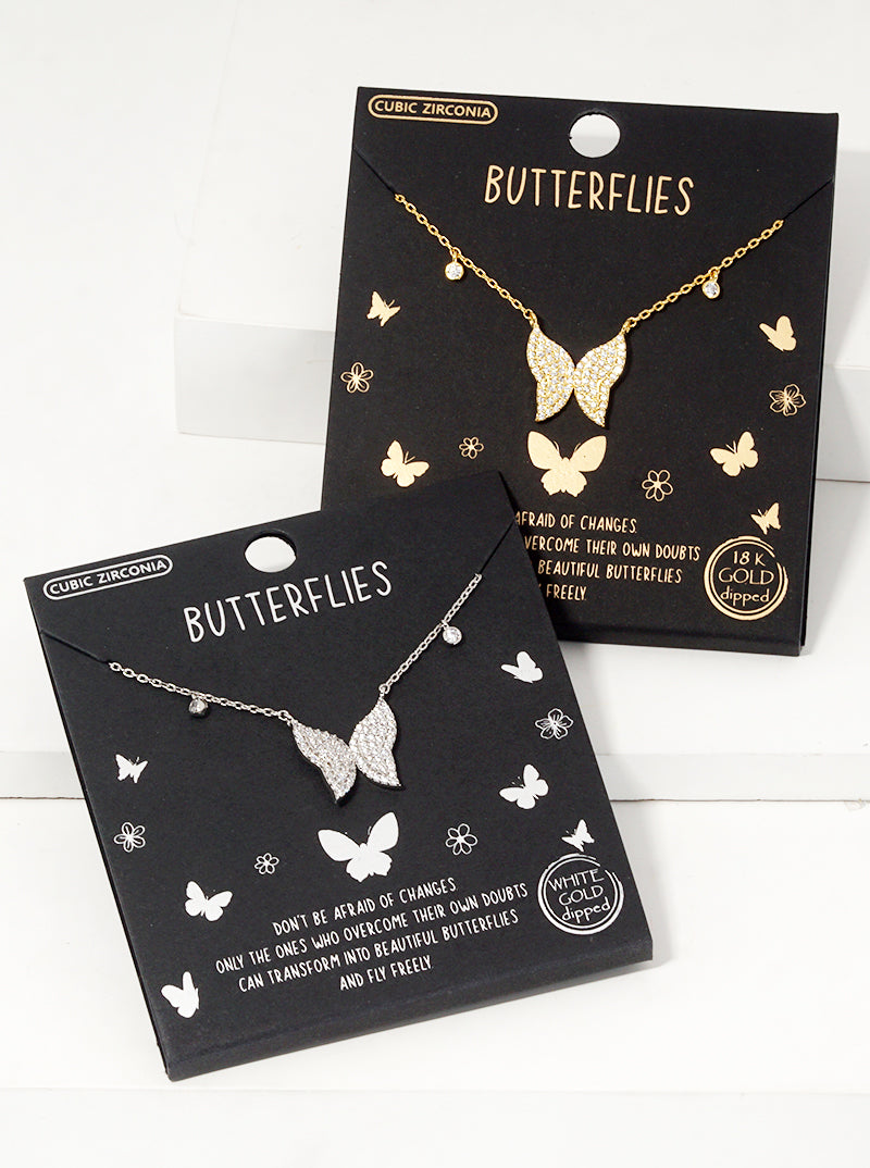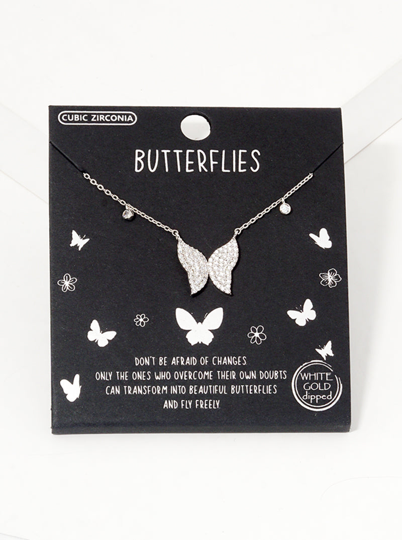 White Gold Dipped CZ Pave Butterfly Pendant Necklace