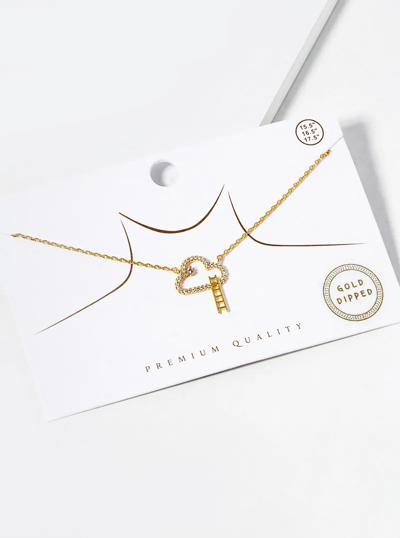 White Gold Dipped CZ Pave Cloud Ladder Pendant Necklace