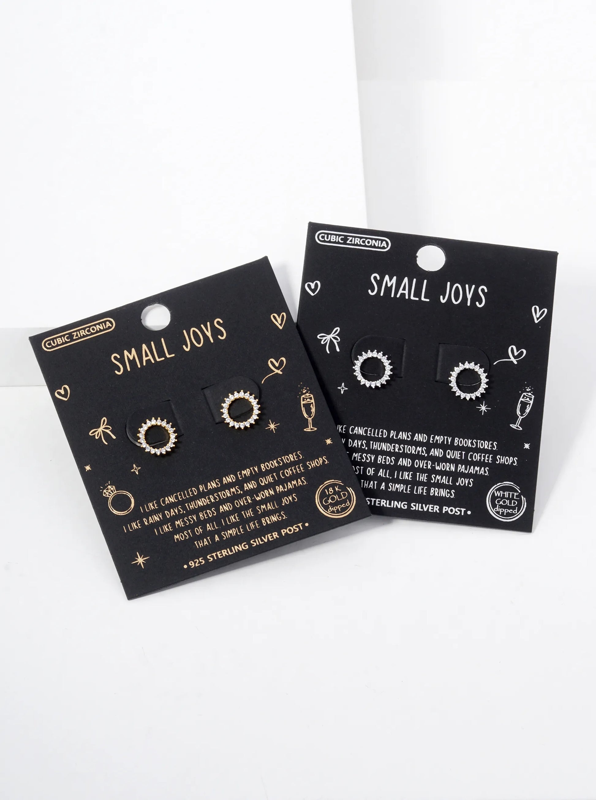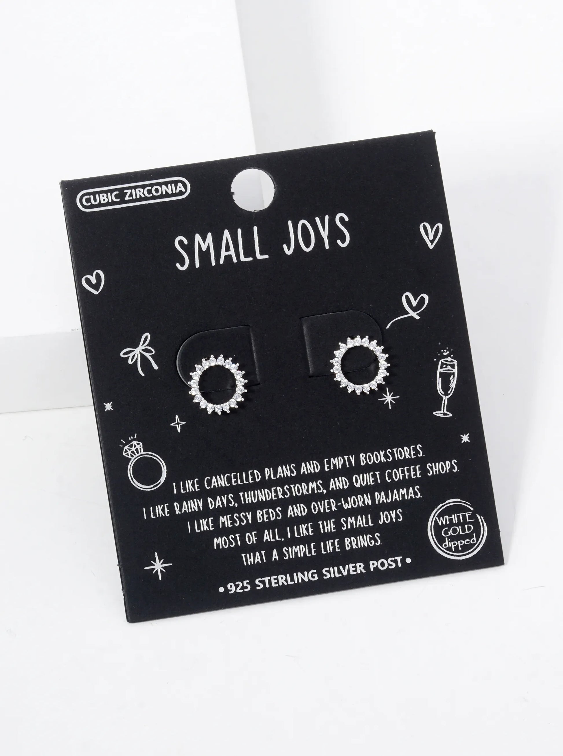 White Gold Dipped CZ Pave Delicate Halo Circle Stud Earrings