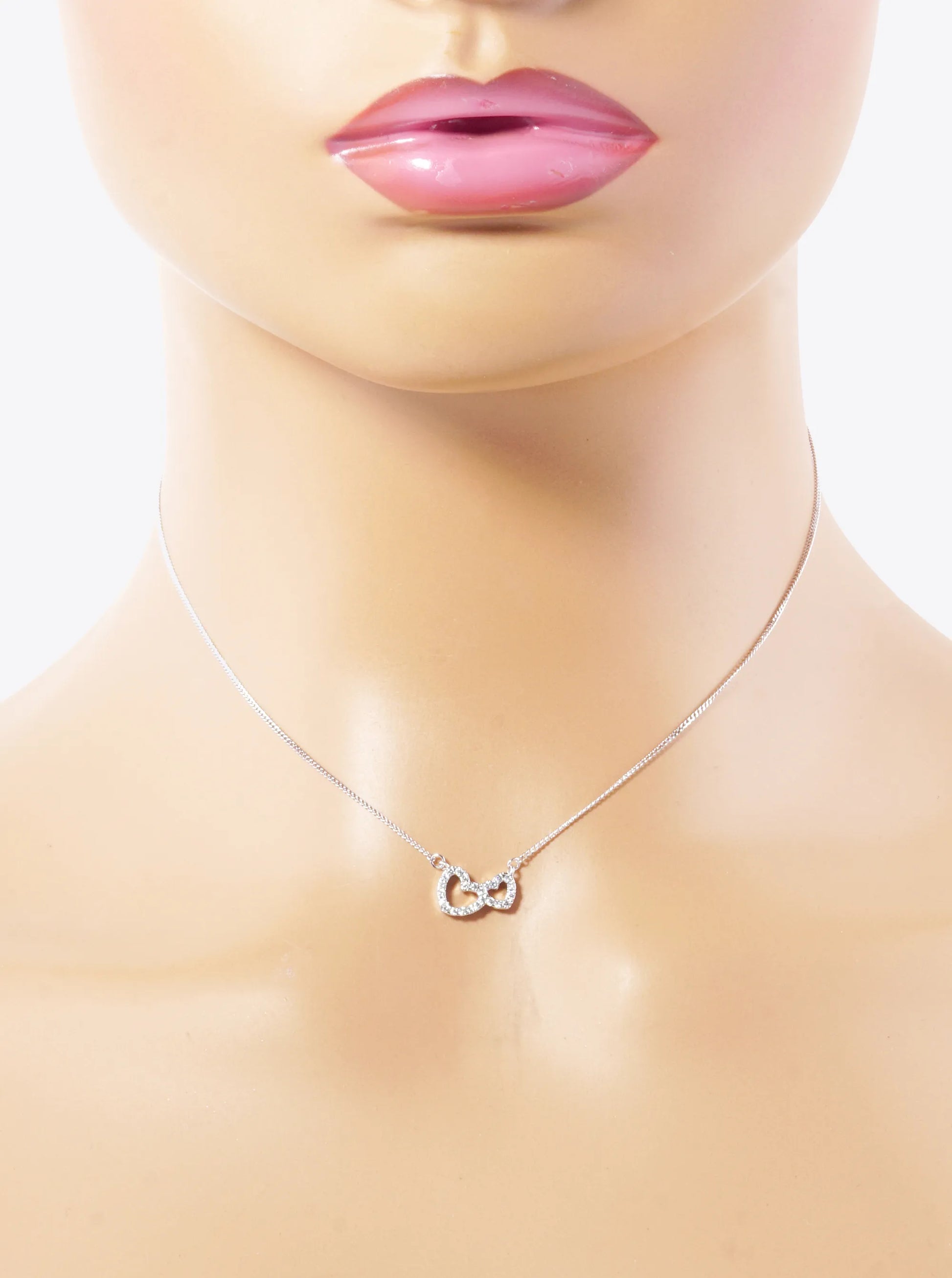 White Gold Dipped CZ Pave Double Heart Pendant Necklace