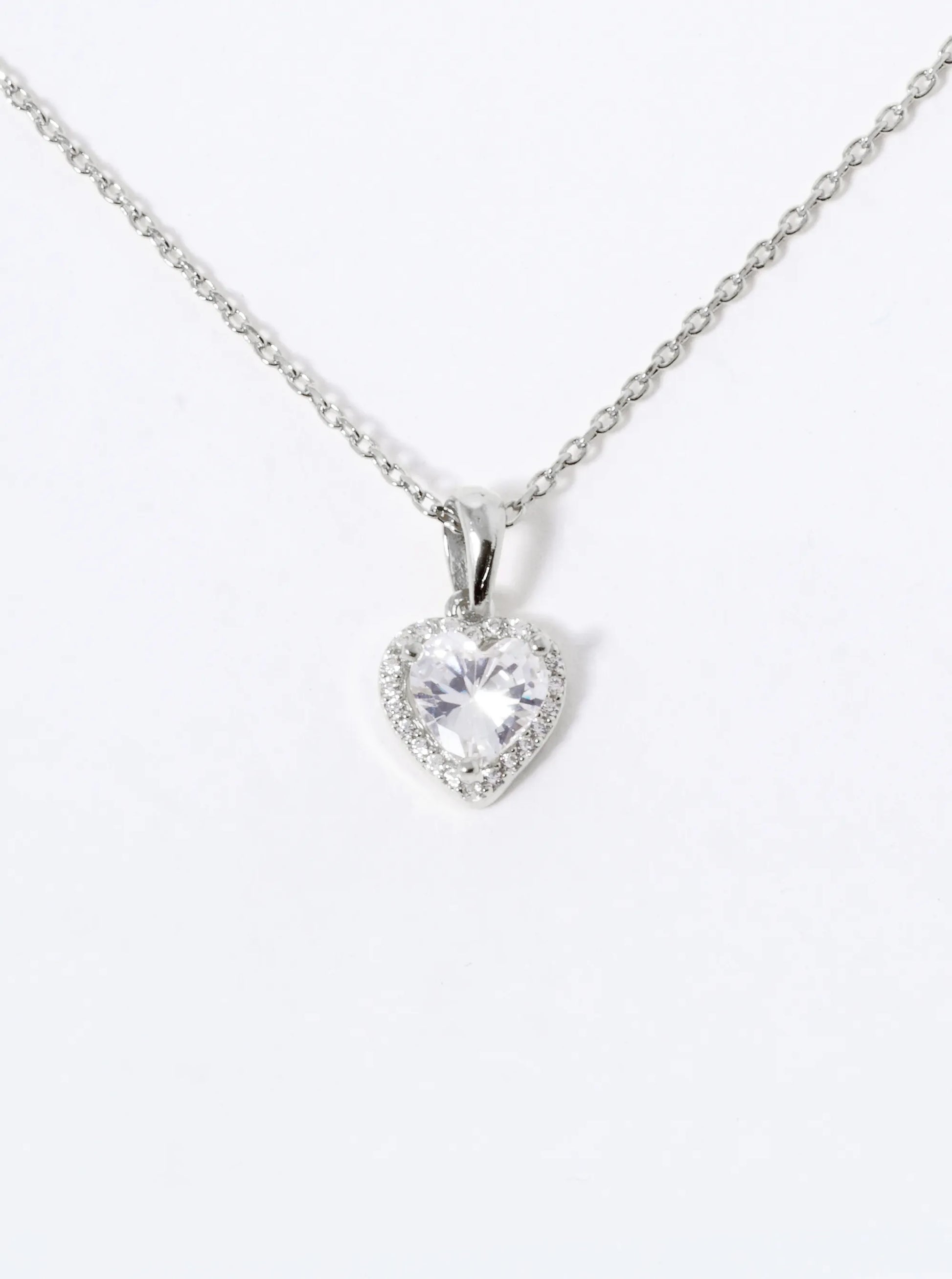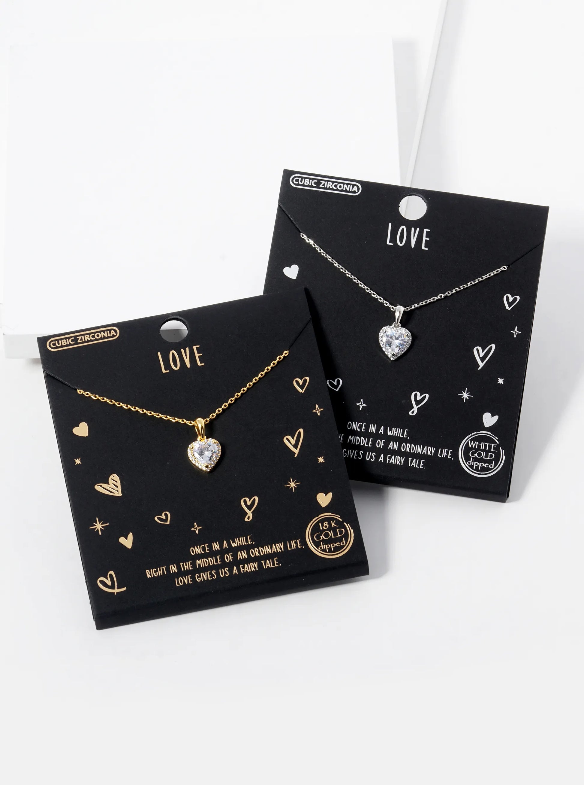White Gold Dipped CZ Pave Heart Stone Pendant Necklace